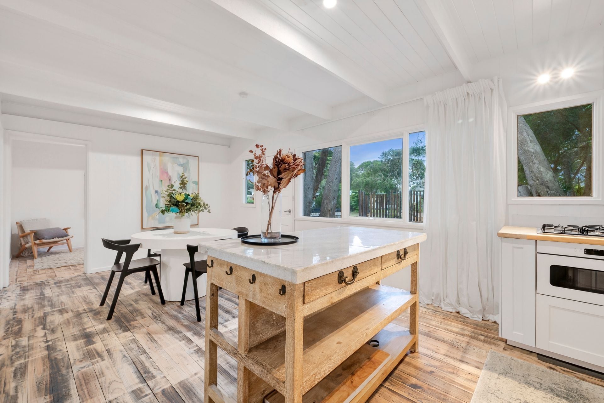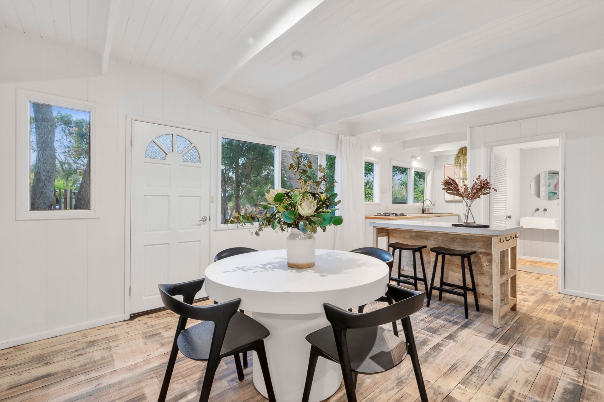 -Beach shack with stained polished floorboards