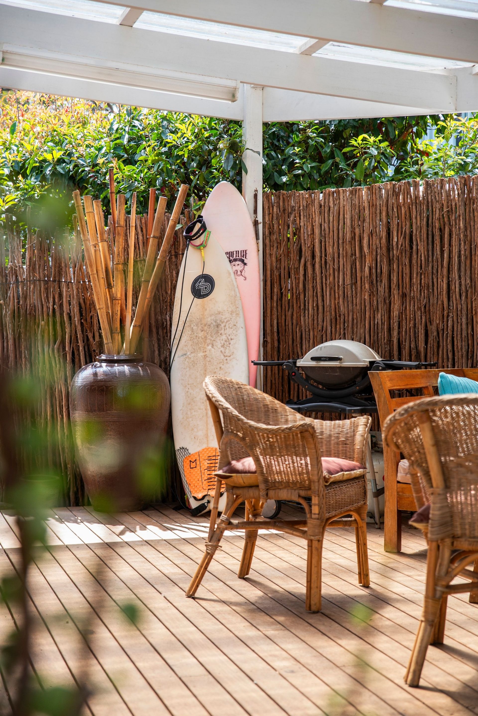 “There is such a beautiful, relaxed beachy feel about this place which extends beyond its aesthetic. I love that we can sit here and hear the waves at night, and it only takes a few minutes for us to grab our boards and be on the sand.”