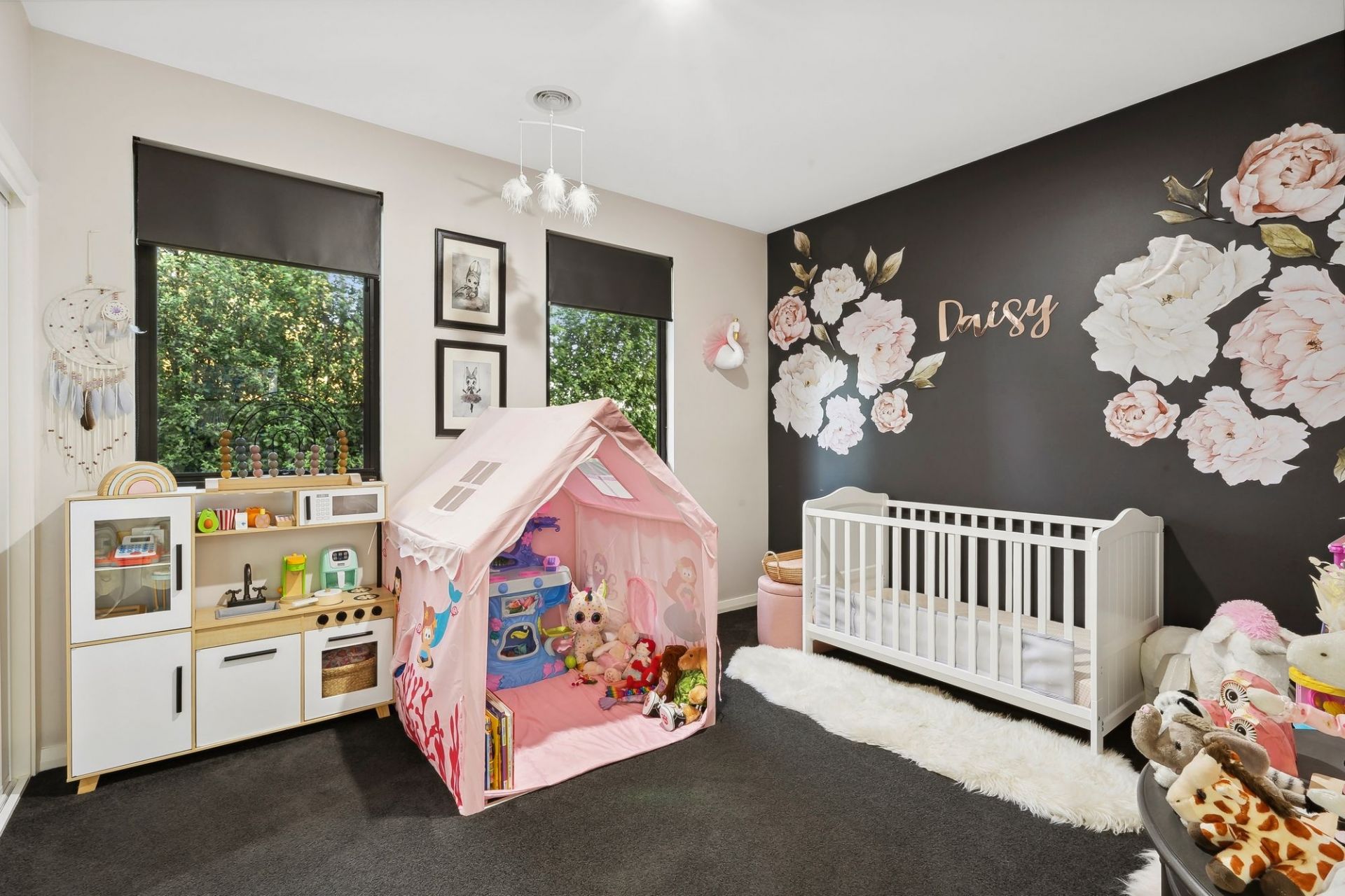 -Ground floor houses a study & three double-sized bedrooms with built-in robes & garden outlooks