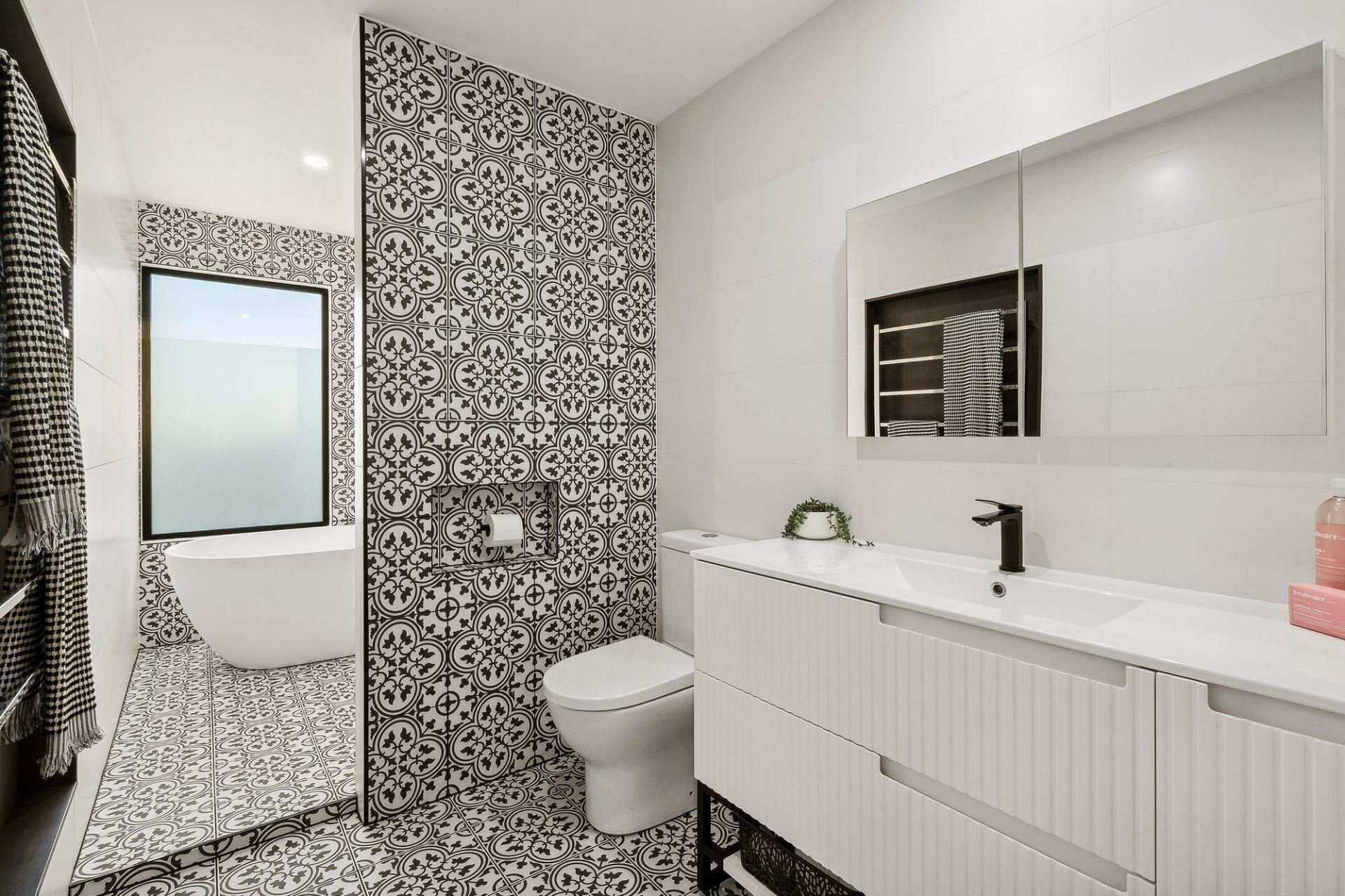 -Luxurious master suite with private living space, double shower ensuite & a glorious freestanding bath, walk-in robe, & ocean views
