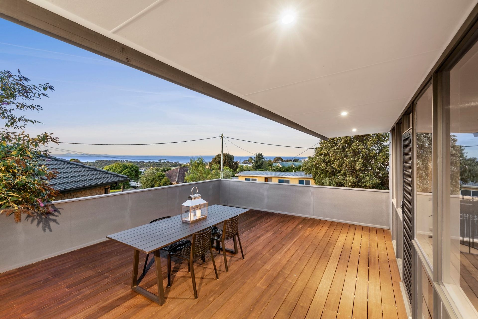 -The expansive alfresco deck is a peaceful place to unwind at the end of the day, backdropped by the sweeping coastal outlook