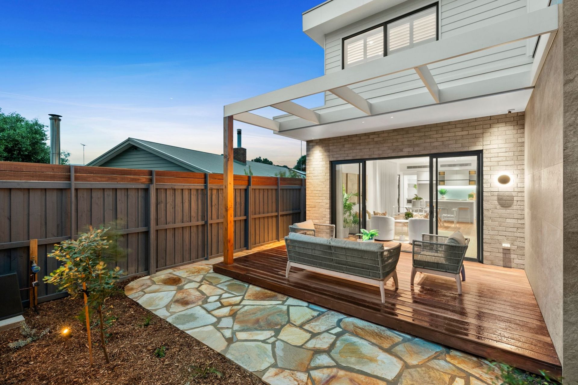-A wall of sliding glass drifts out to a private alfresco zone, seamlessly integrating indoor-outdoor living & entertaining