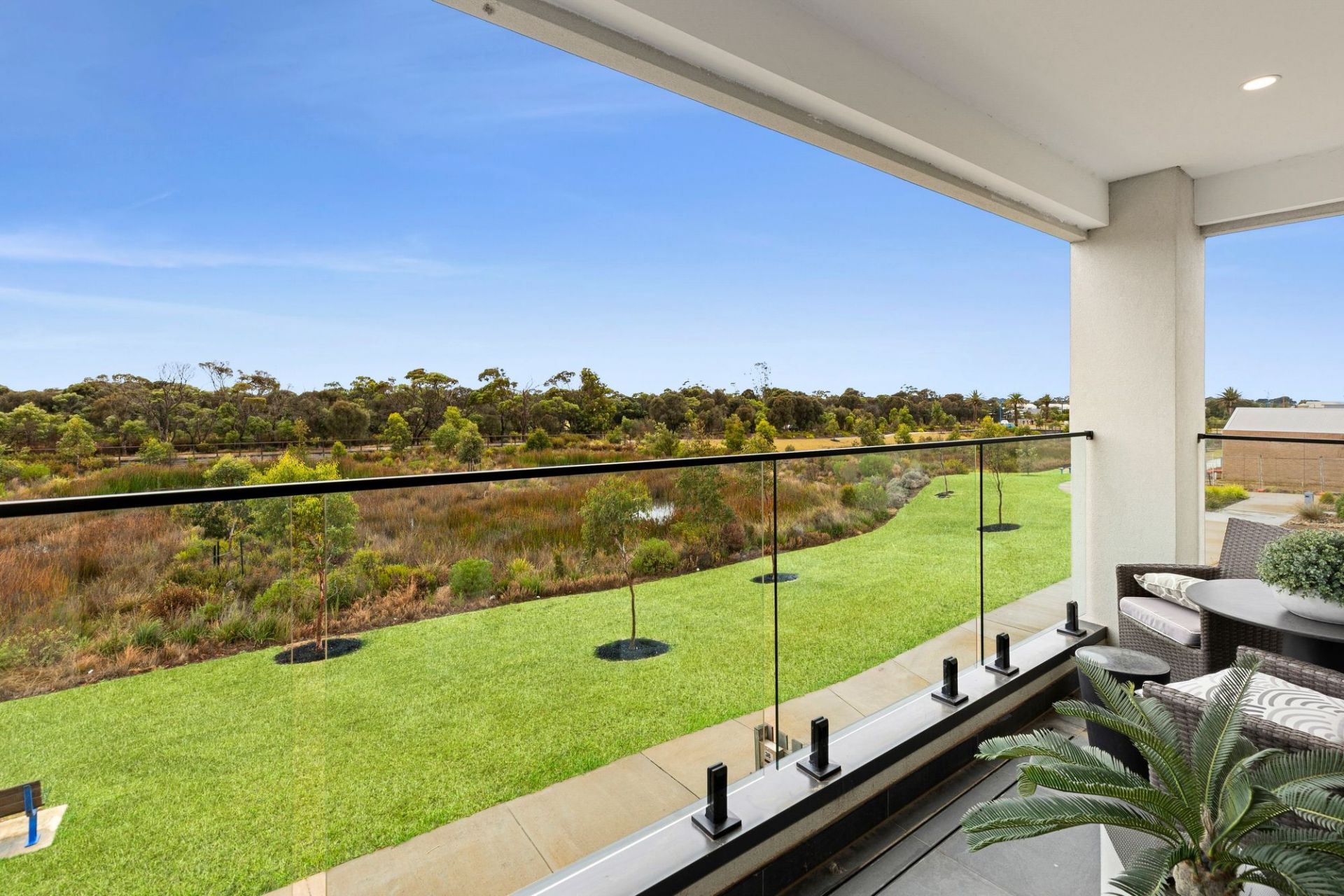 -A blissful north-facing retreat spills outwards to an elevated balcony, taking in the wetland outlook