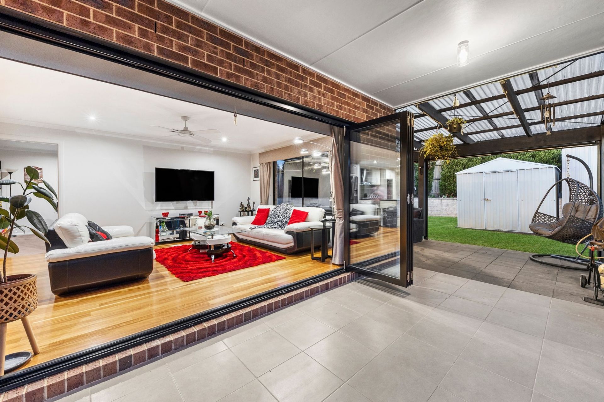 -Banks of bi-fold doors glide open to a covered alfresco terrace to relish effortless entertaining