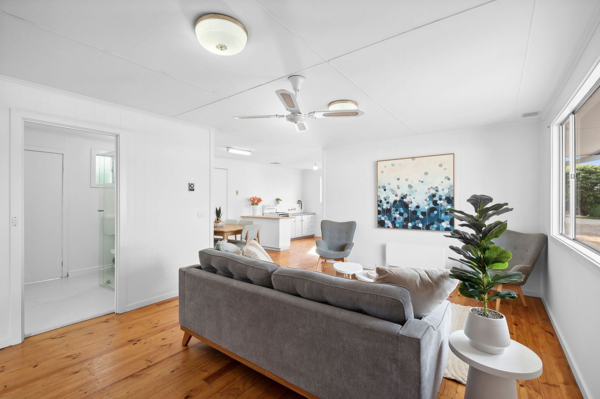 -Open plan living delights with painted panel walls & original floorboards
