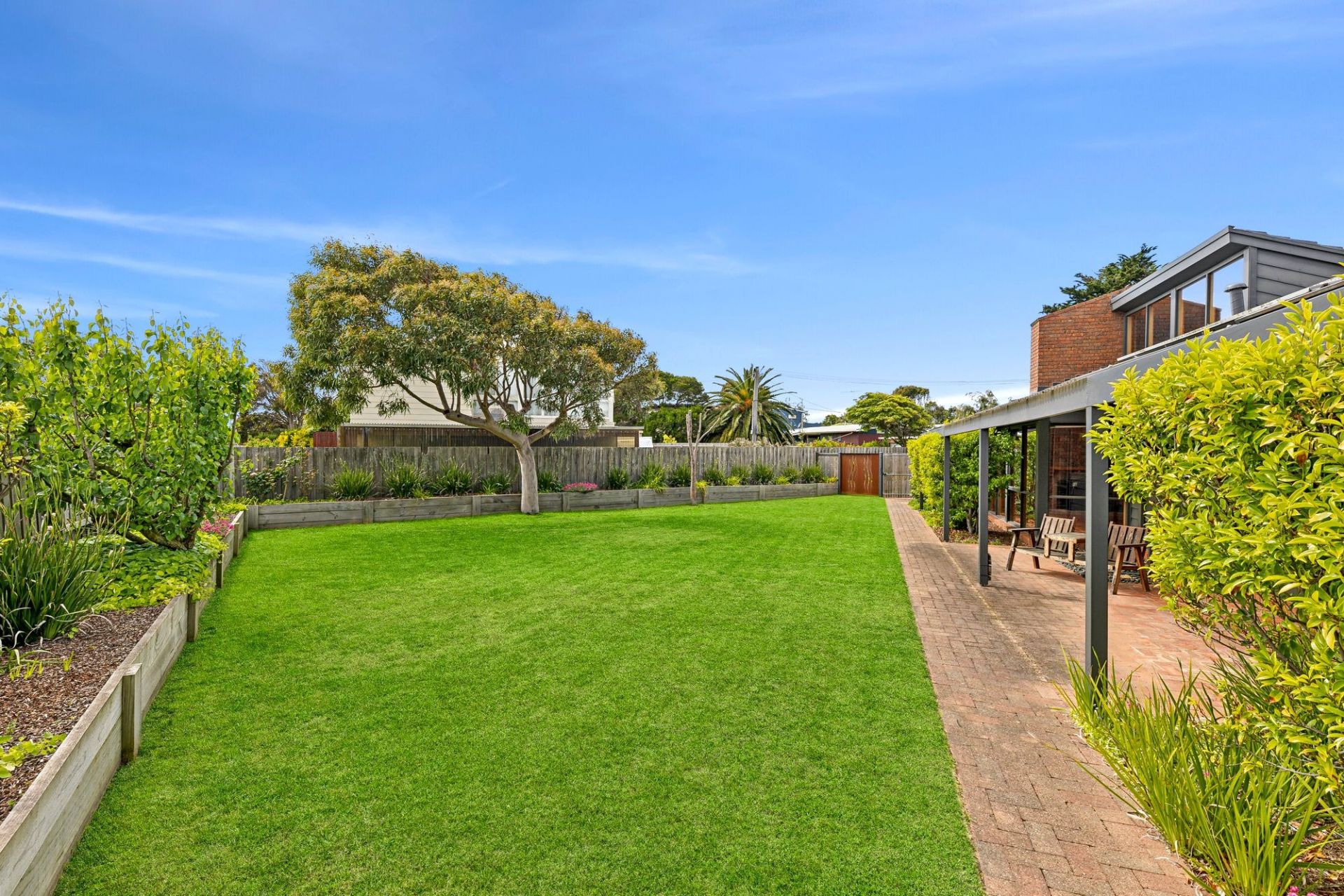 -Large sun-drenched backyard leaves plenty of options with the added bonus of side access.