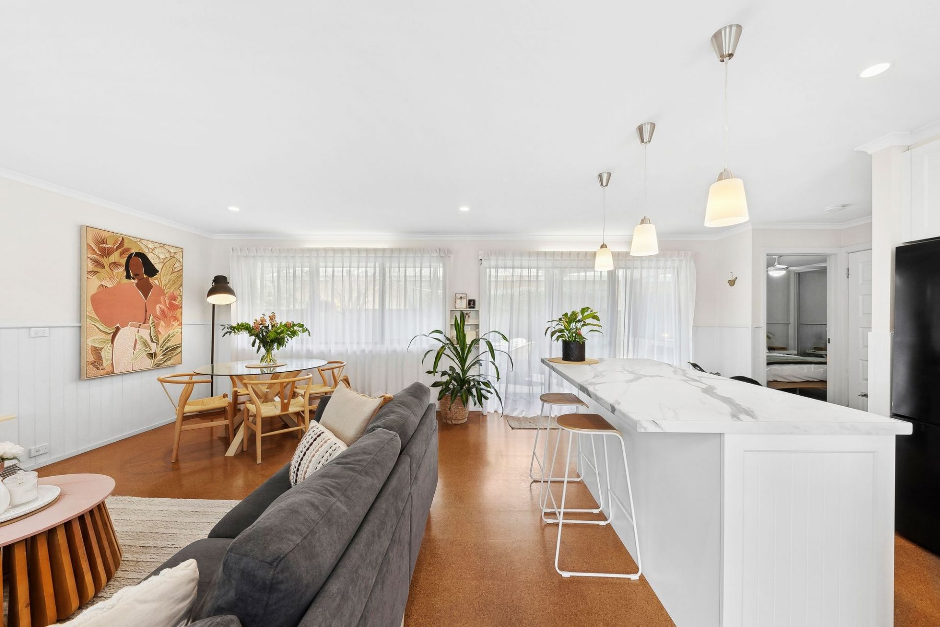 Cute as a button and nestled within one of Ocean Grove’s most desirable lifestyle playgrounds, this beautifully reimagined home presents the perfect combination of classic charm, modern functionality, and low-maintenance ease. Highlighted by a carefree coastal ambience throughout, its 2-bedroom layout is awash in natural light and reveals a central open-plan living hub with a seamless alfresco flow. Easy to manage across a 285sqm (approx.), this freshly presented abode enjoys a stellar location adjacent to the local golf course, and is within close walking distance of the river, lake, and town centre.