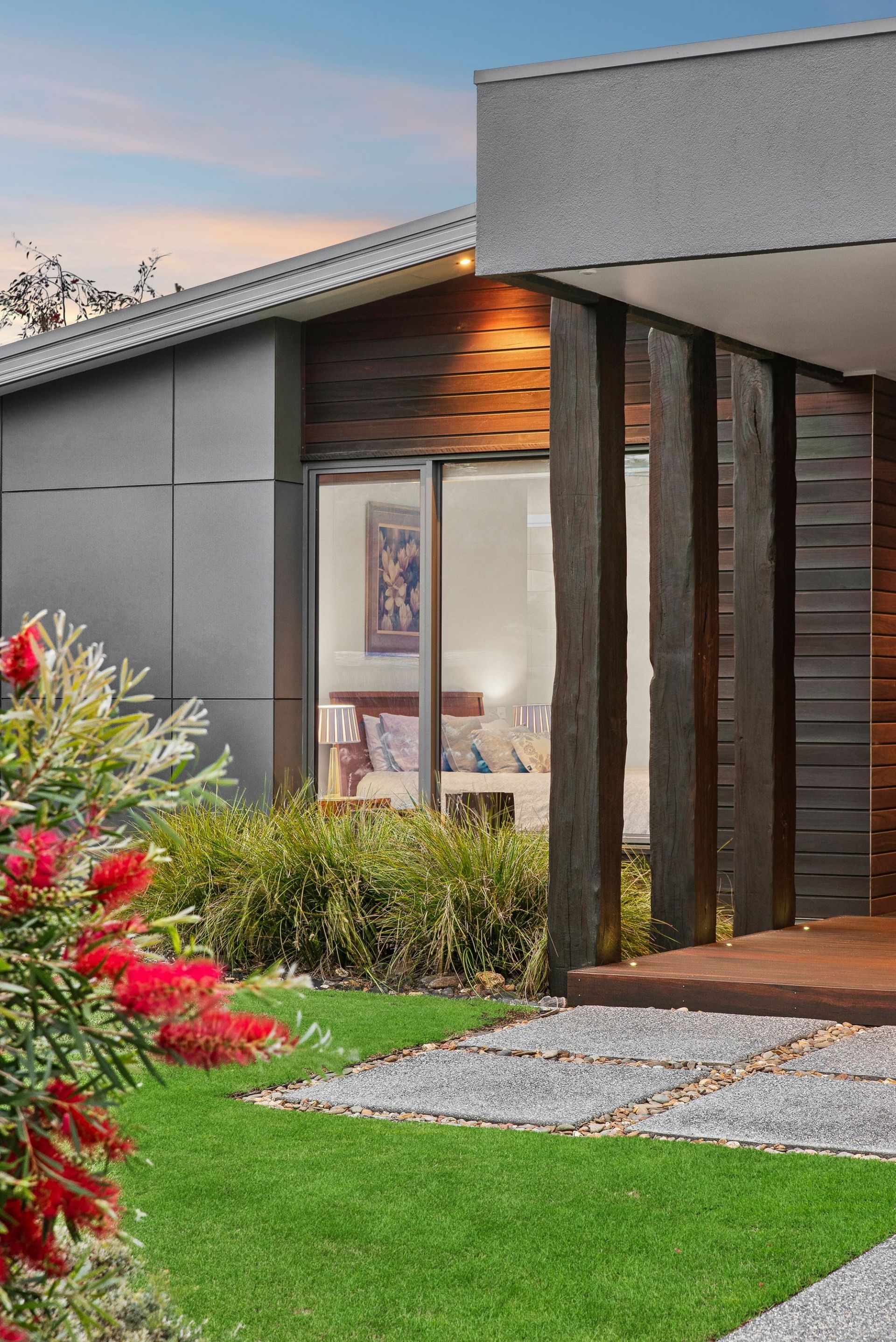 -Statement ‘Firestreak’ timber floors meet Silvertop Ash decks & reclaimed timber feature posts