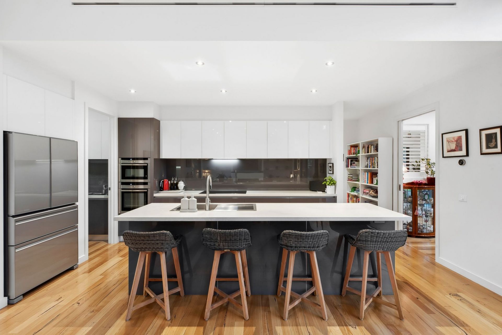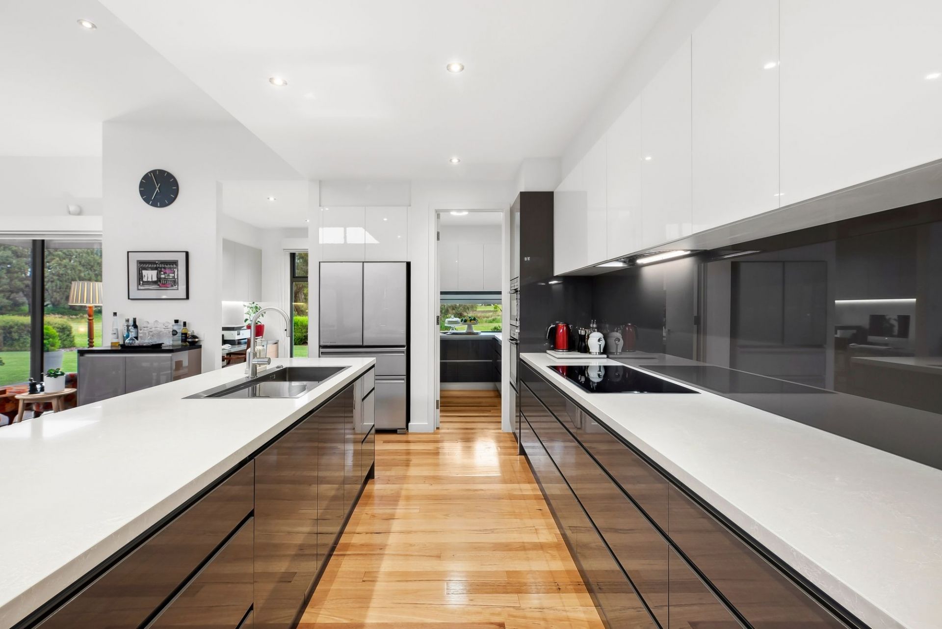 -Designer kitchen with stone benchtops, ample soft close cabinetry, & attractive butler’s pantry