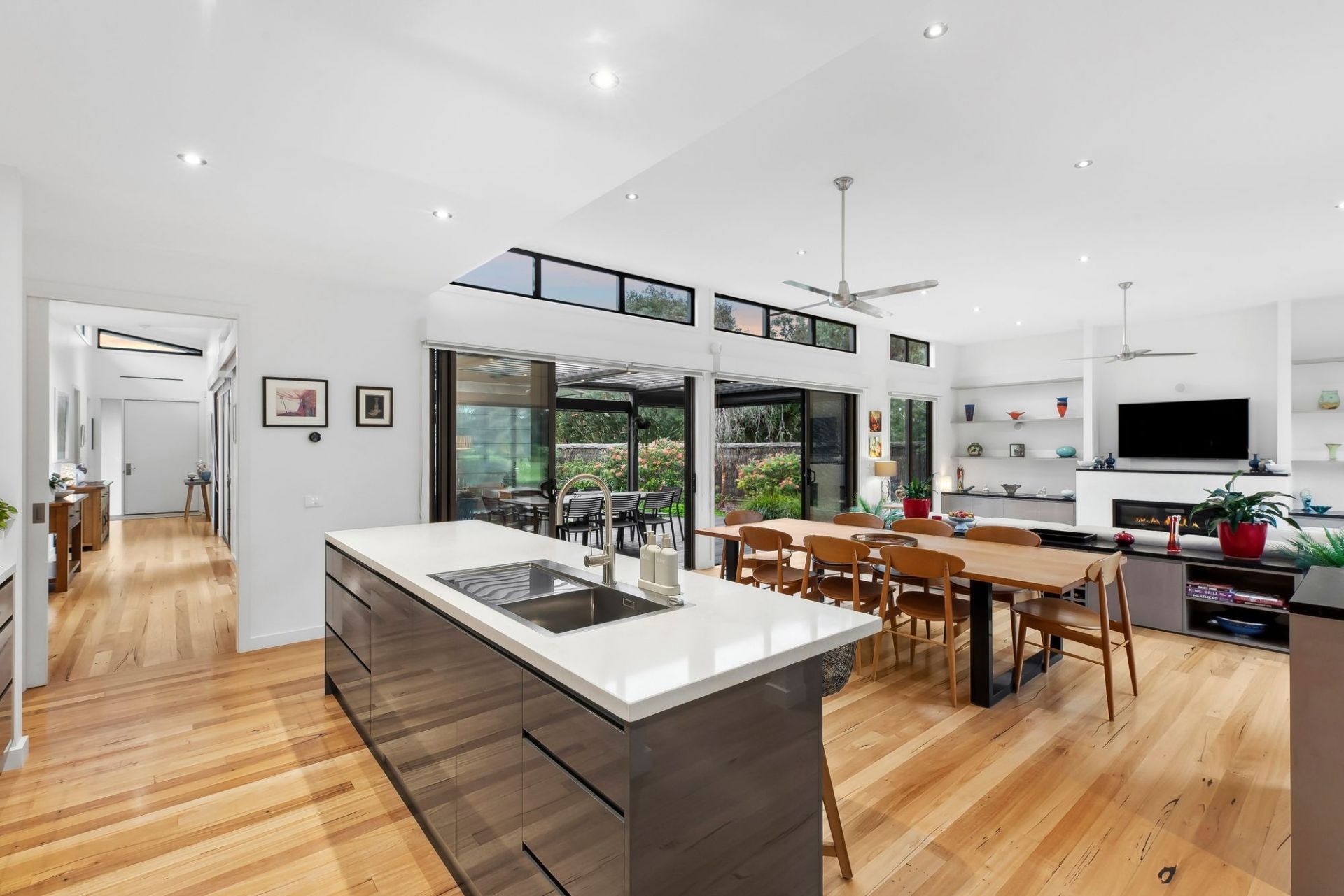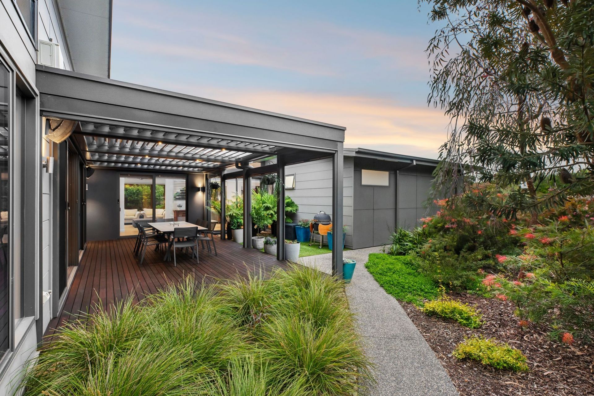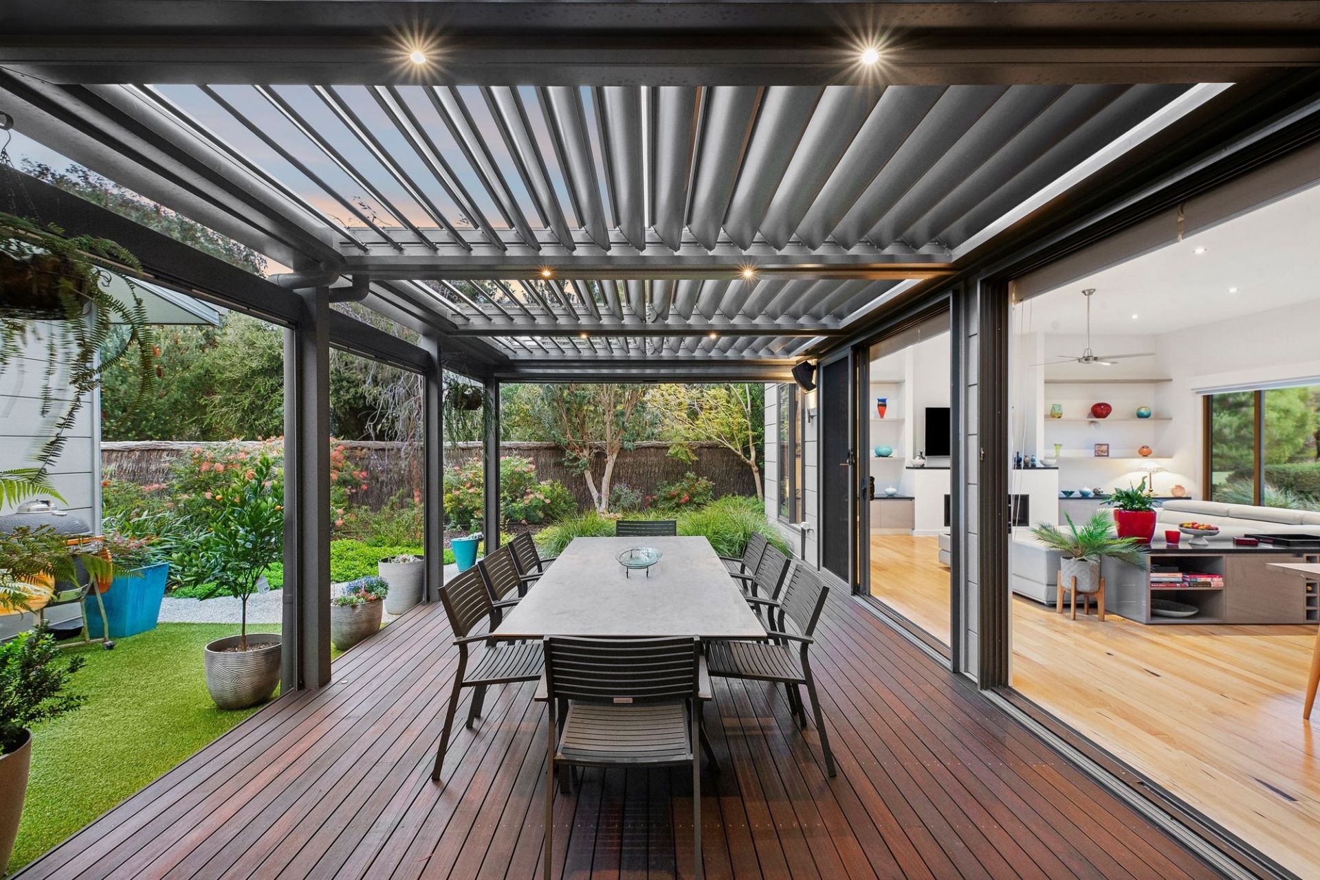 -Seamless indoor-outdoor living with expansive alfresco area & café blinds for year-round entertaining