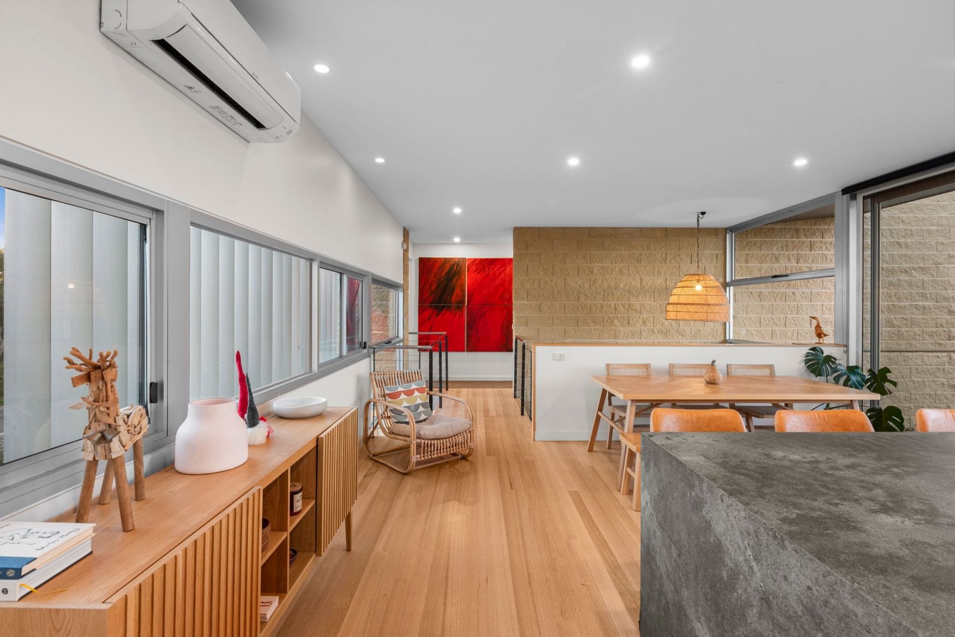 -Light-filled interiors with soaring ceilings, polished concrete floors, & Tas Oak to first floor