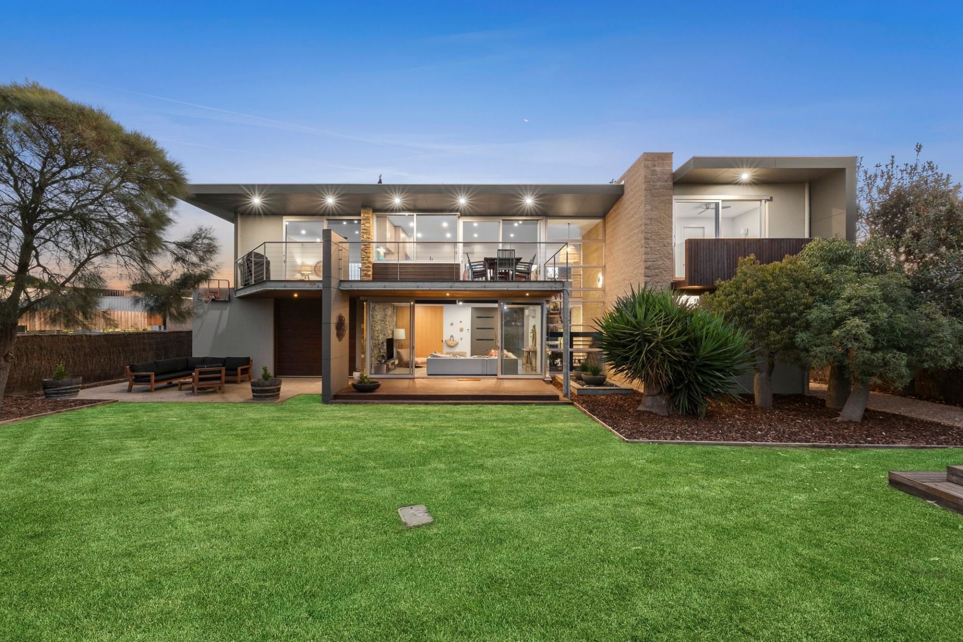Positioned within the prestigious 13th Beach Golf Links Estate, this architecturally crafted residence reimagines luxury living. Backing directly onto the serene fairways of the Creek Course, the home boasts a seamless connection to its natural surroundings. Designed for entertaining and relaxation, the expansive floorplan features two sunlit alfresco decks, soaring ceilings, and expansive glazing to frame uninterrupted views of the lush greens. This home offers two master suites and two additional bedrooms on the ground floor. Every element has been considered to embrace comfort, style, and views, just minutes from Barwon Heads’ village, beaches, and dining.