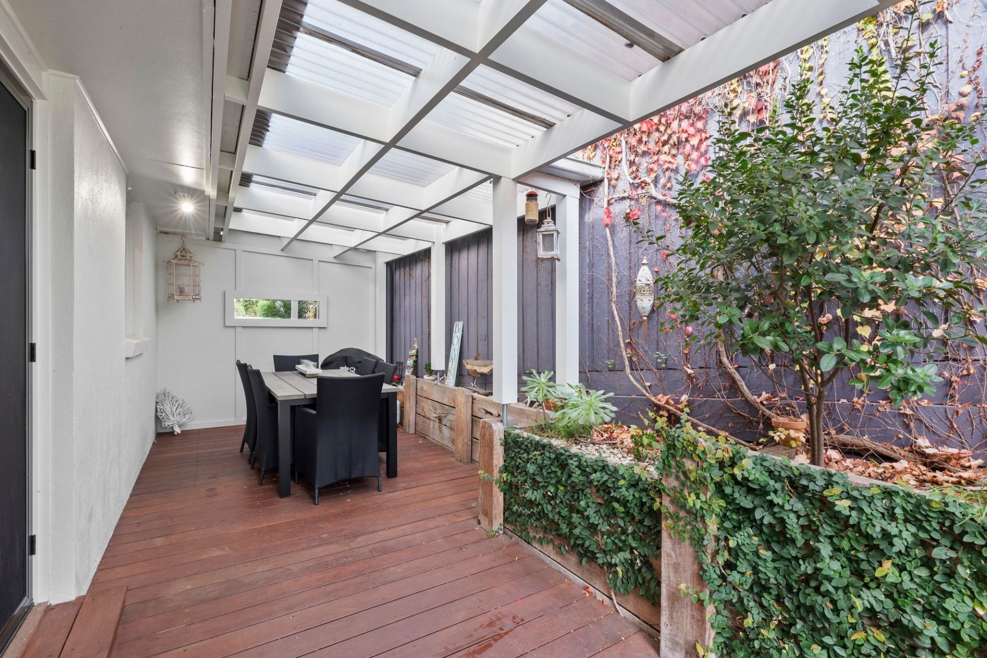-Neat, low-maintenance garden & lawn, with covered alfresco entertaining area