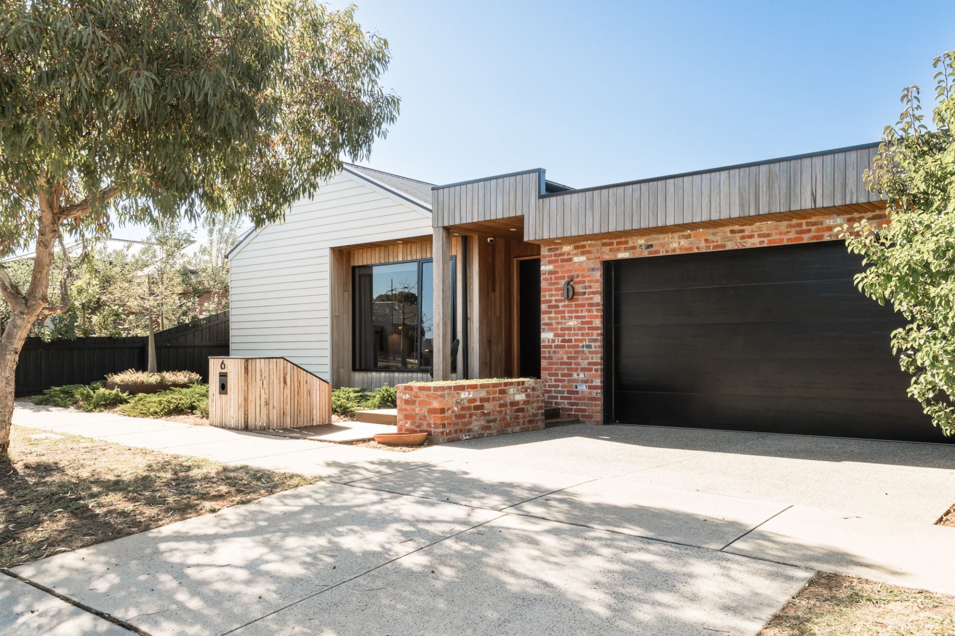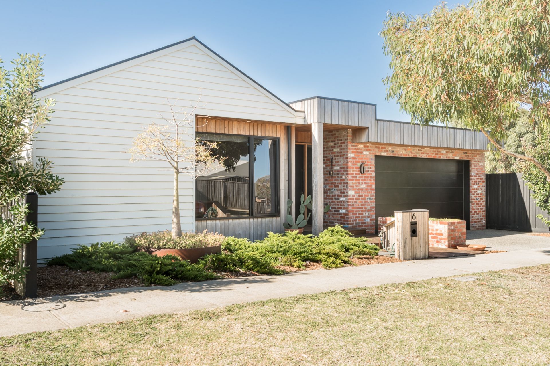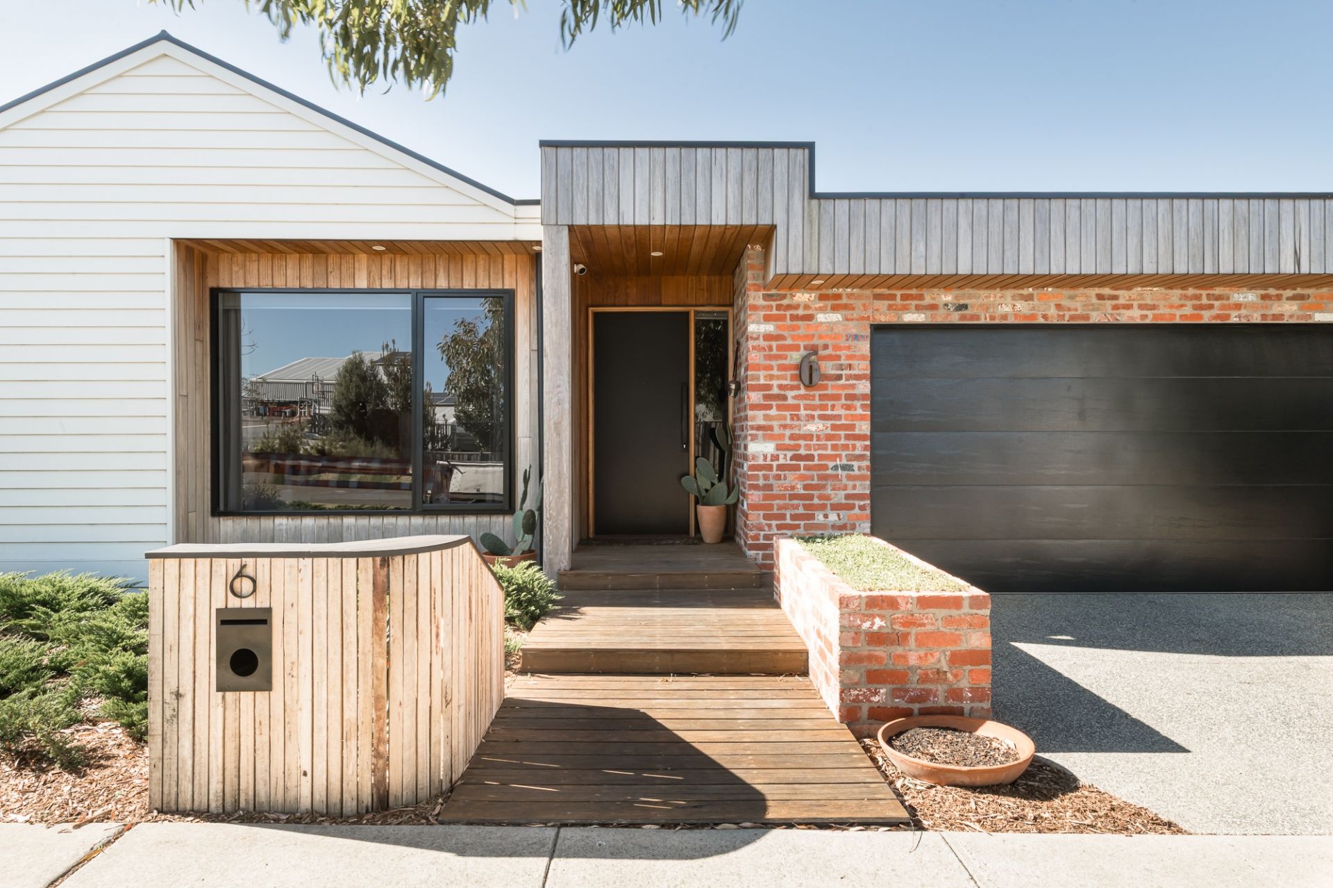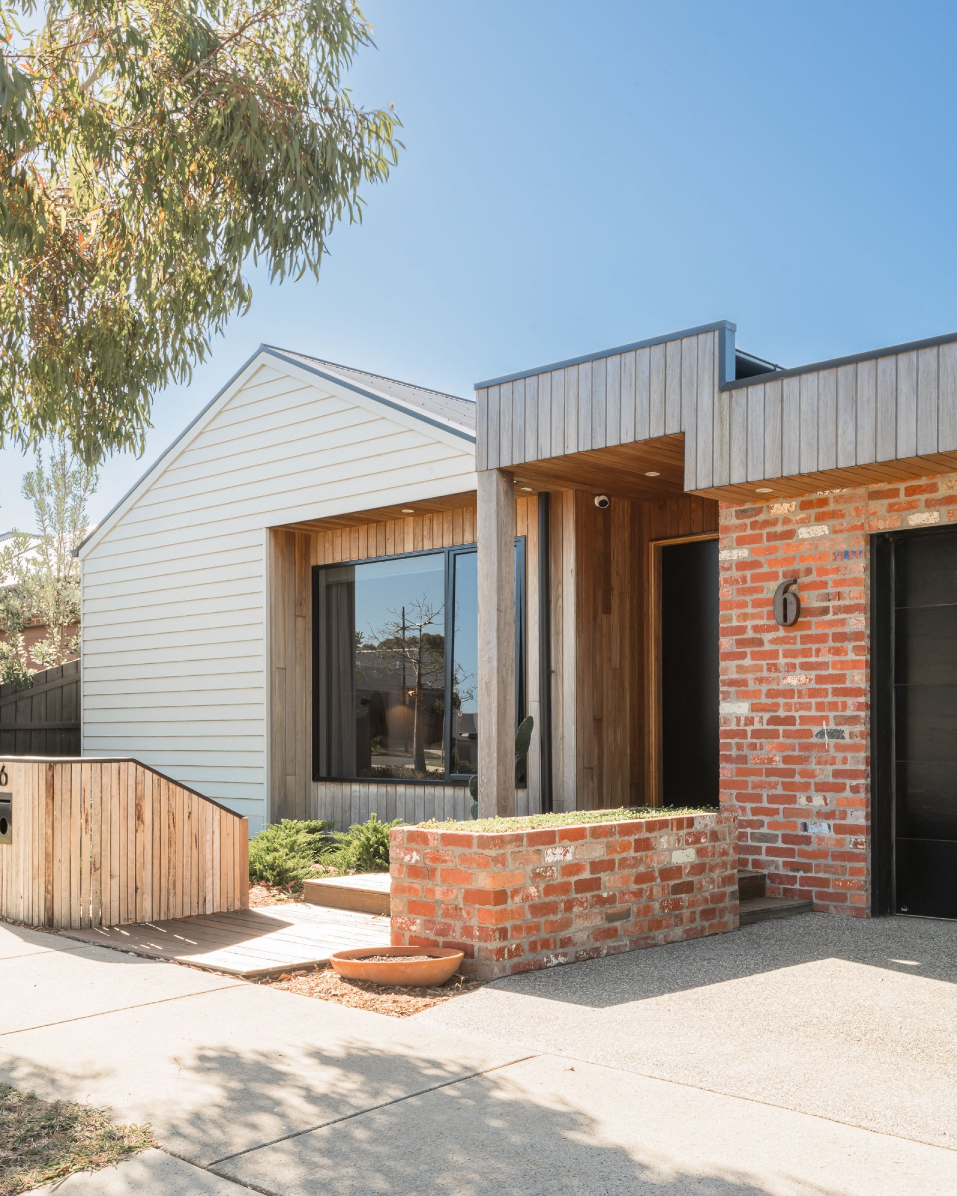 -A Silvertop Ash, recycled red brick & linear weatherboard facade reflects the distinction inside