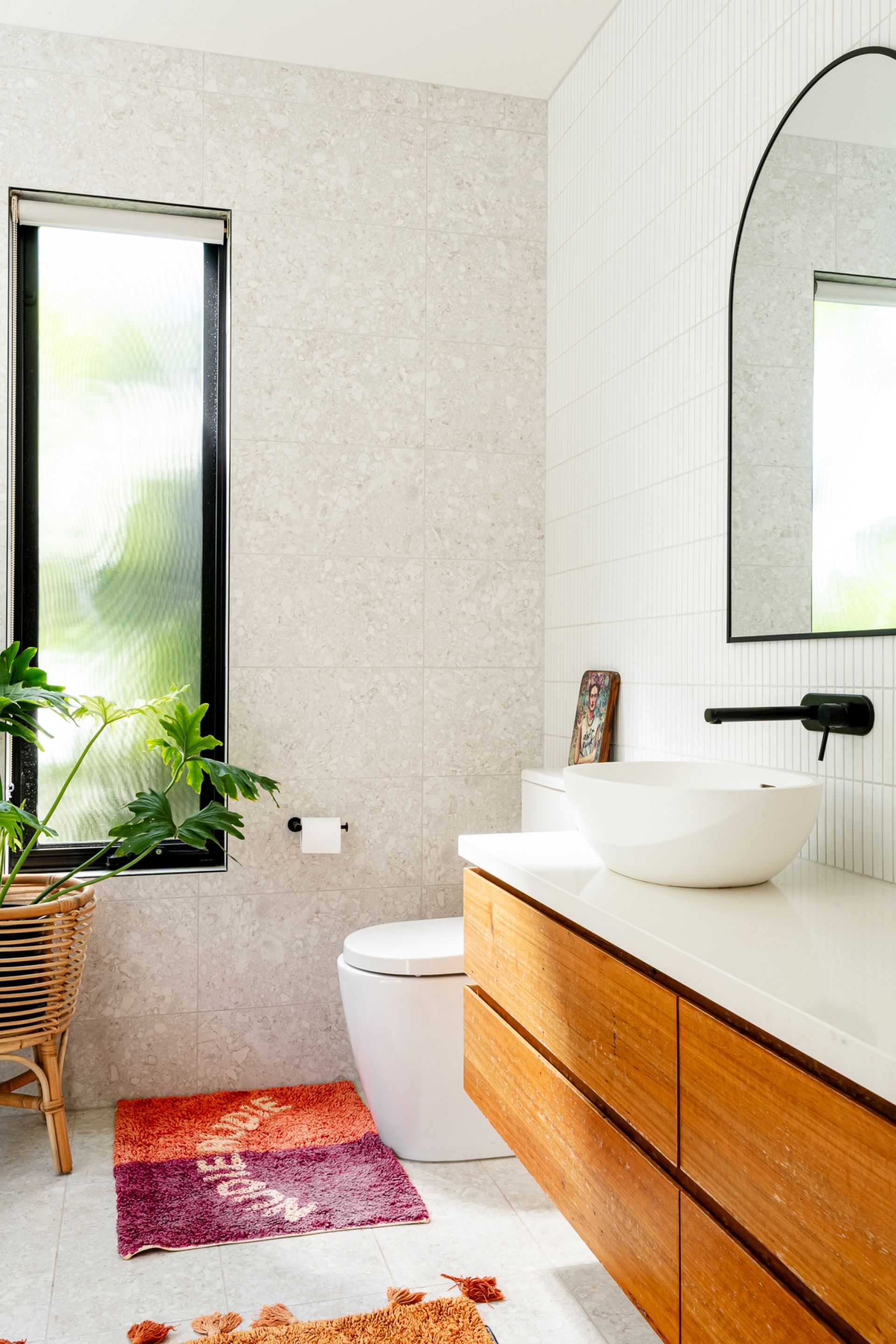 -Fully-tiled family bathroom continues the relaxed luxury, with freestanding egg bath, oversized shower & separate powder room