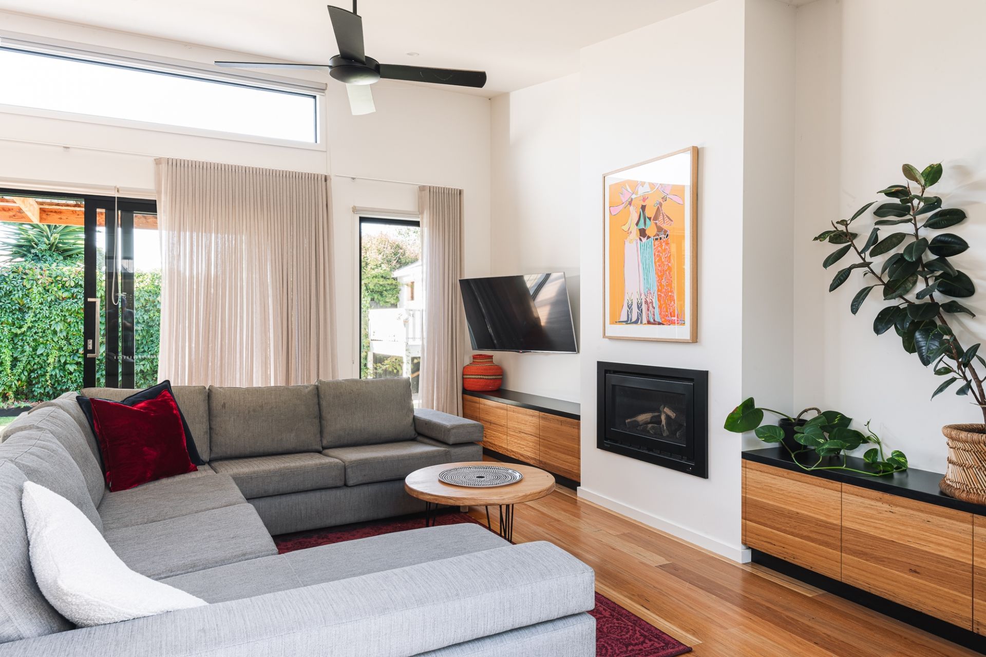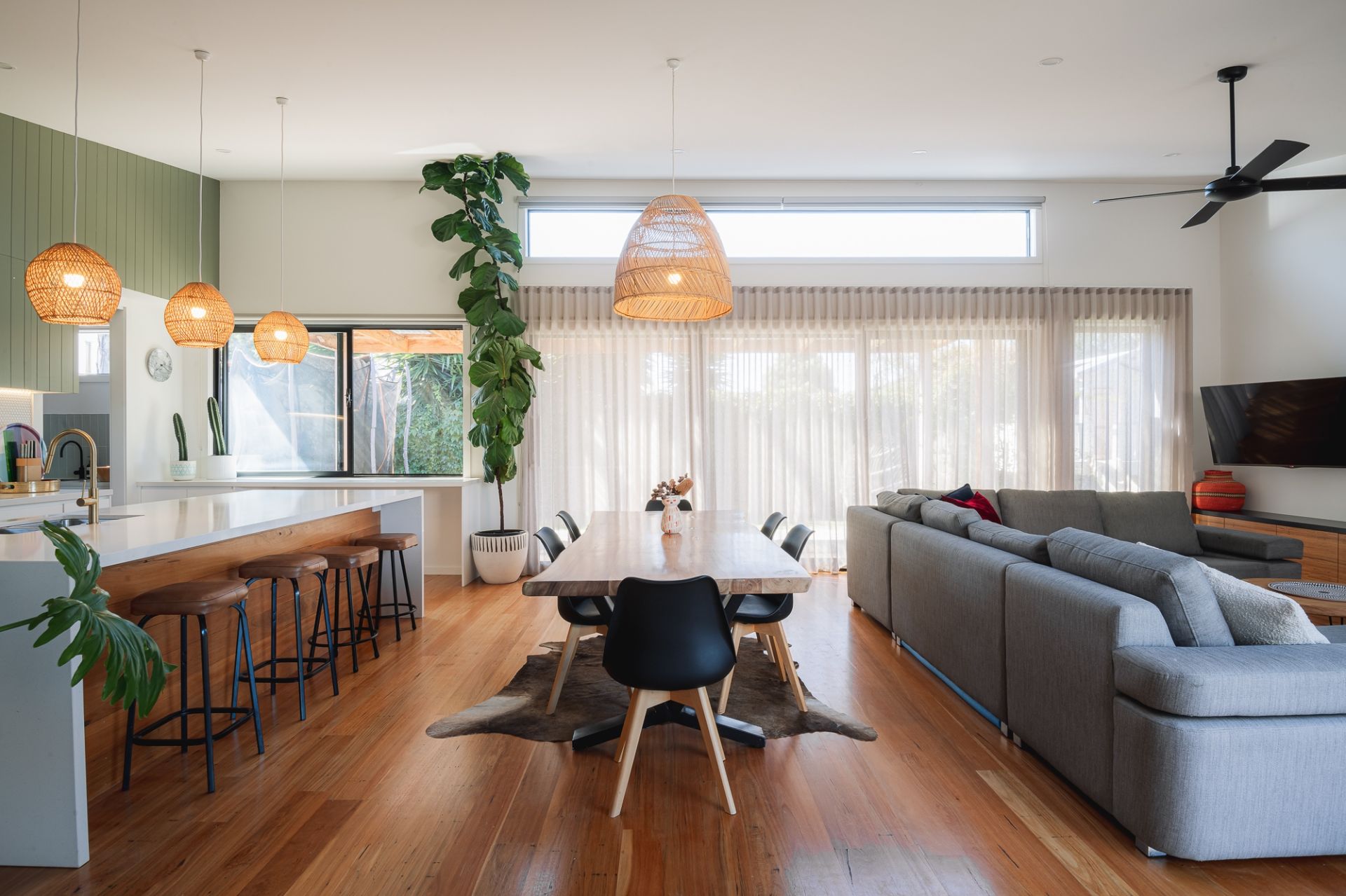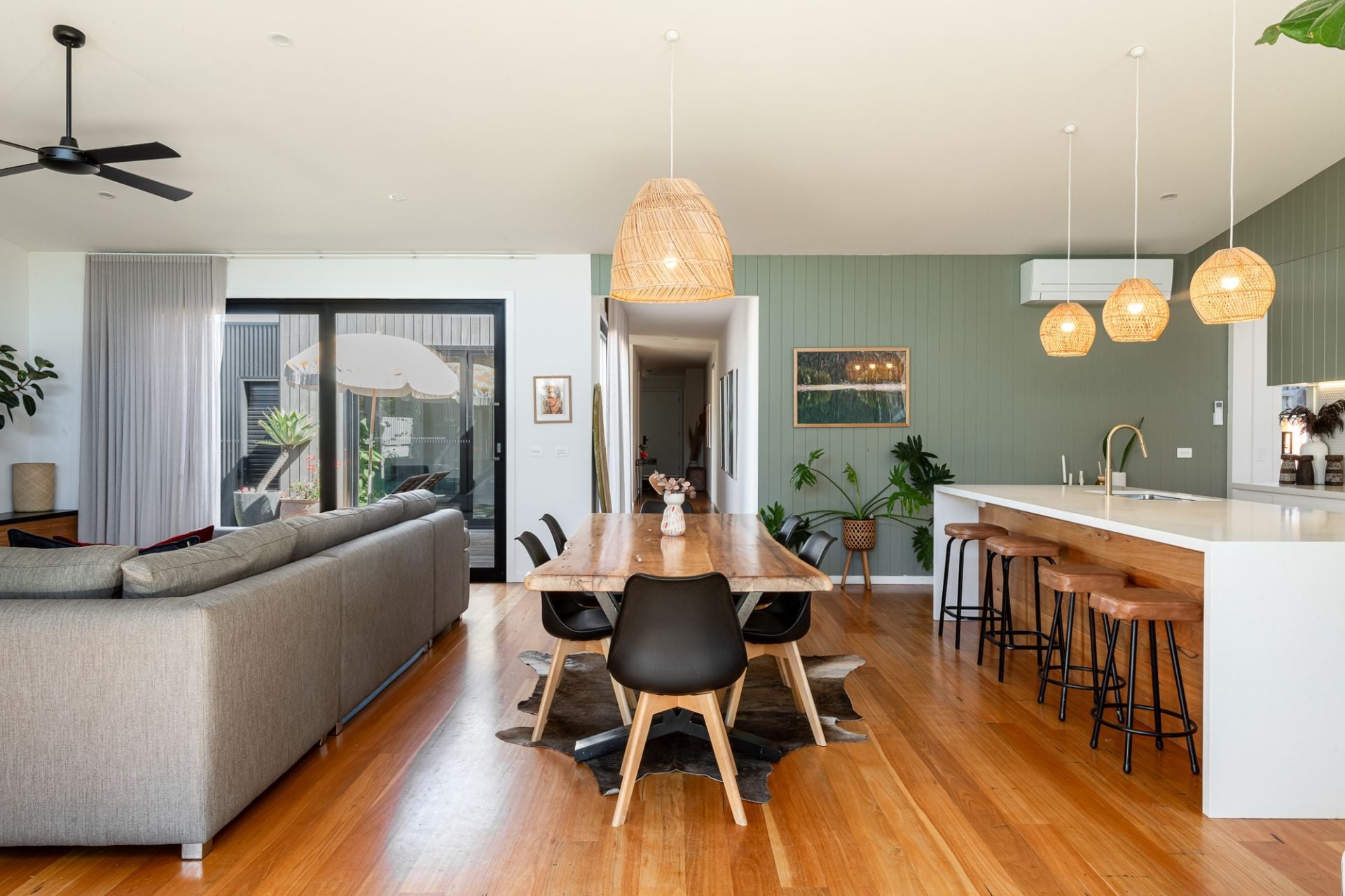 -Sophisticated coastal aesthetic led by high square-set ceilings & blackbutt timber flooring