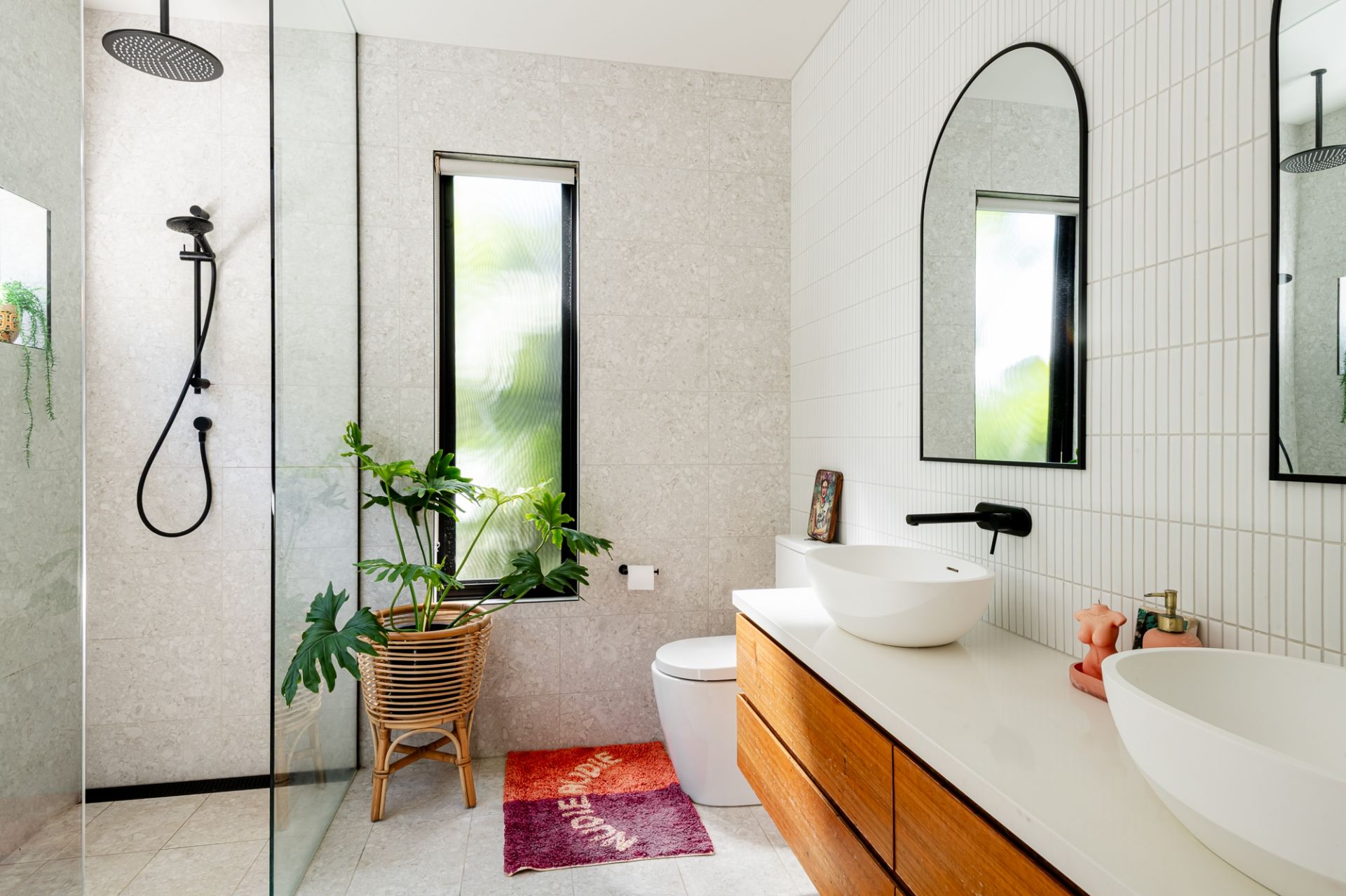 -Sumptuous, fully tiled ensuite features double walk-in shower & dual stone-topped vanity