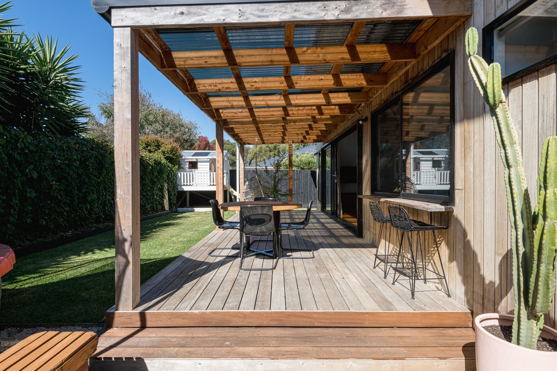 -Expansive sliding doors retract fully to a vast alfresco deck, equipped with gas & water lines