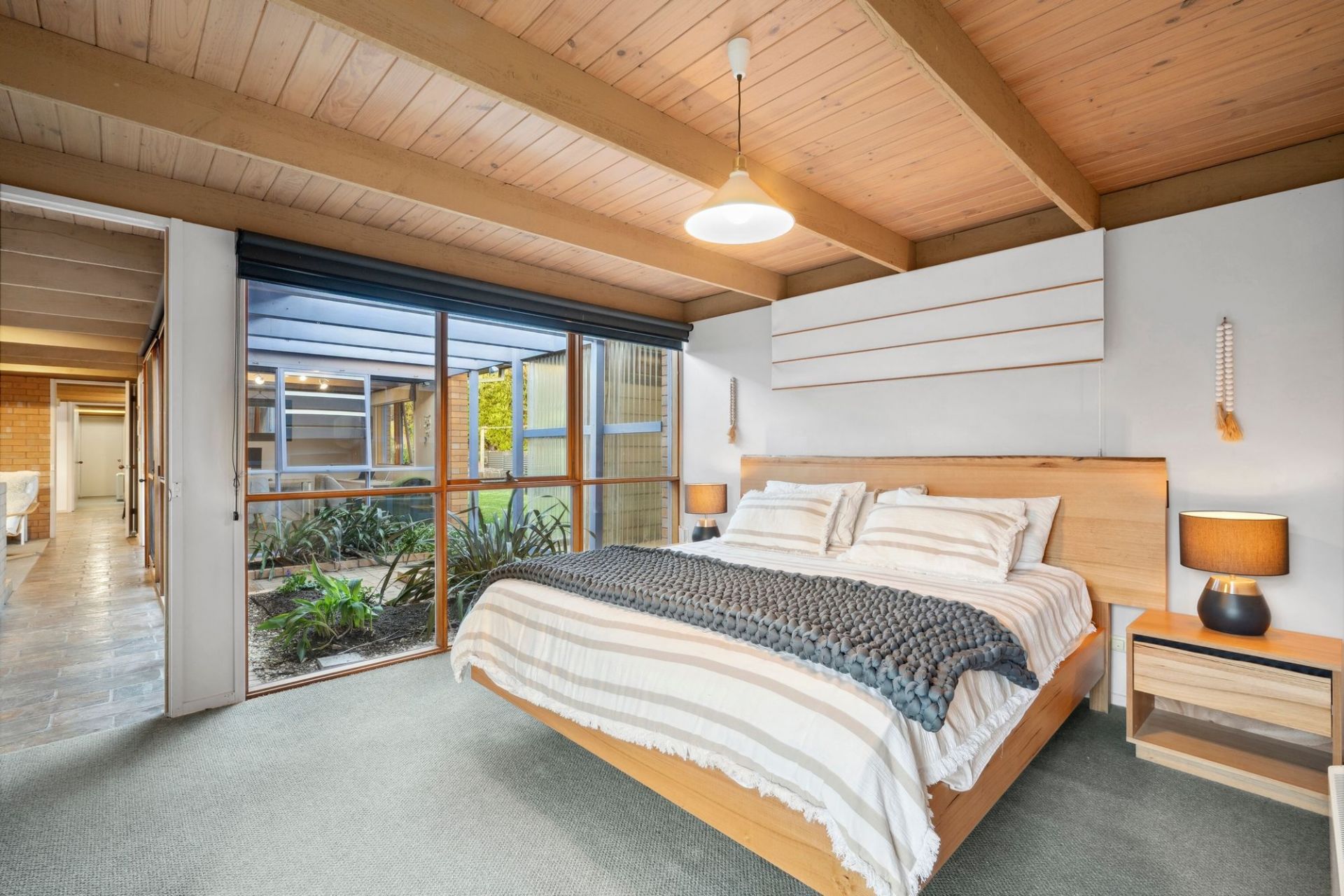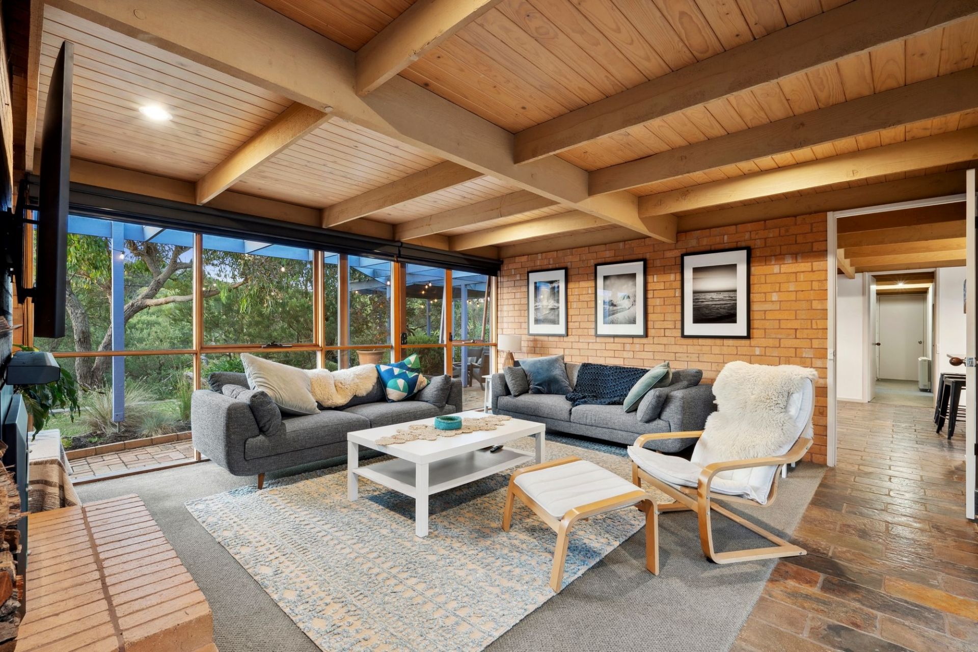 This immaculately maintained home is a rare offering in the coastal pocket of Breamlea, where nature, design and lifestyle effortlessly come together. Sheltered behind the dunes and just 150m from the beach, it delivers a soulful escape that’s surrounded by native vegetation. Cleverly oriented to capture light and garden views from every room, it creates a calming and immersive connection to the outdoors. Inside, warmth and character abound through timber-lined ceilings, exposed brick feature walls, and slate flooring. The updated kitchen is a centrepiece, and multiple living zones provide separation and flow, connecting beautifully to sheltered alfresco areas and the garden. Zoned bedroom wings offer privacy and flexibility, including a generous master, a home office, and two additional bedrooms in the guest wing. Tucked into a peaceful cul-de-sac, just a short walk to the sand, this property offers the idyllic beachside lifestyle—relaxed, timeless and hard to find.