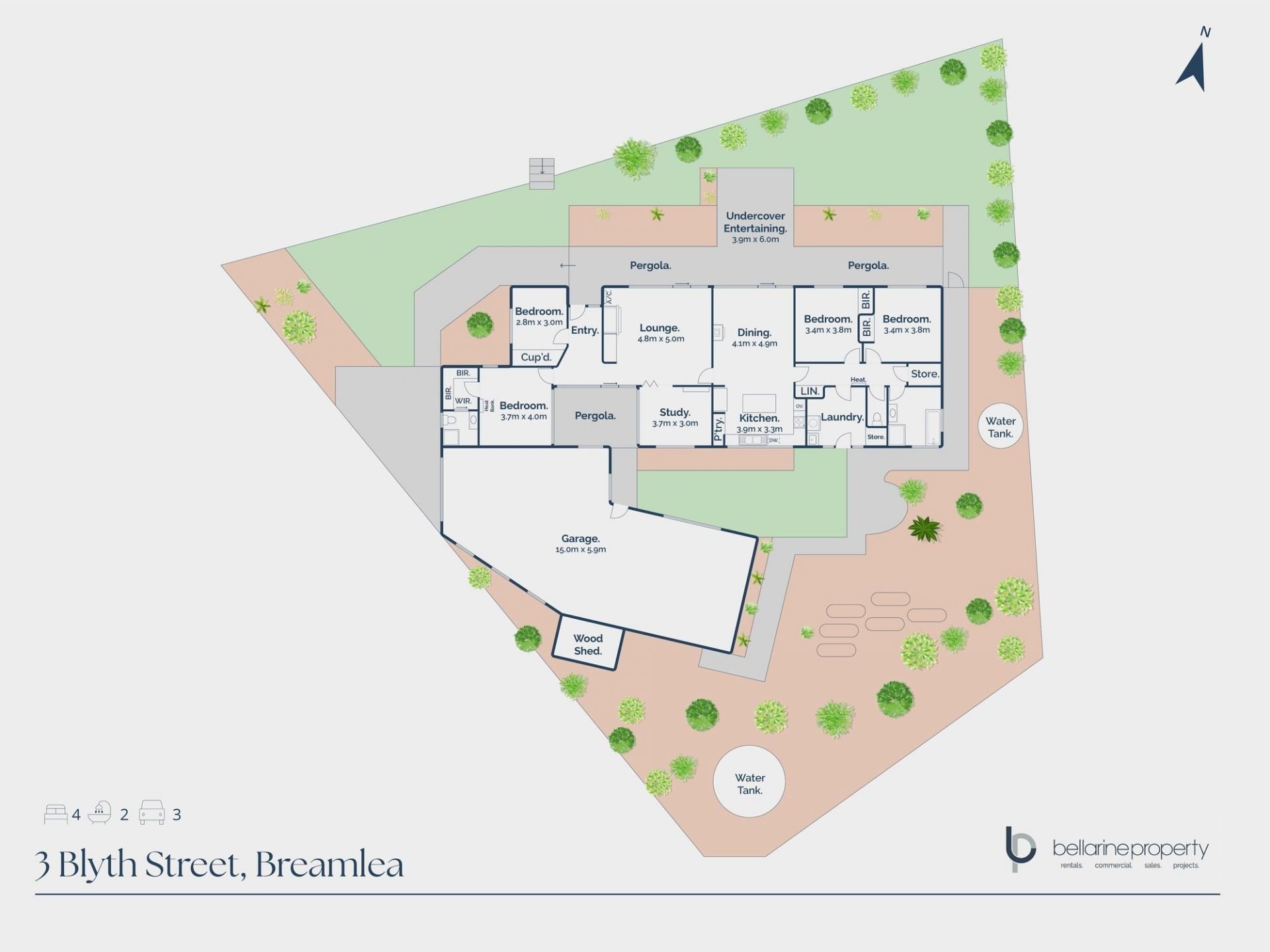 - Lush established gardens, two pergolas, & lawn areas ideal for relaxing or entertaining