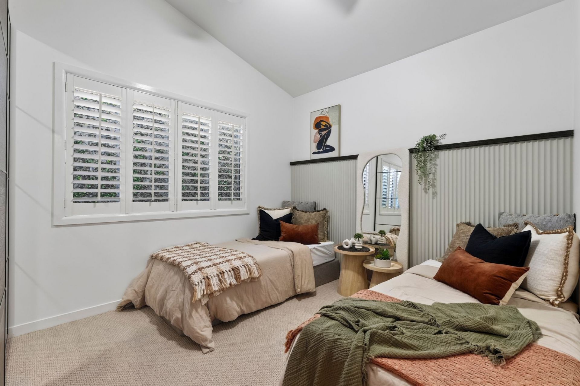 -Two ground floor bedrooms with designer bedhead walls & mirrored robes
