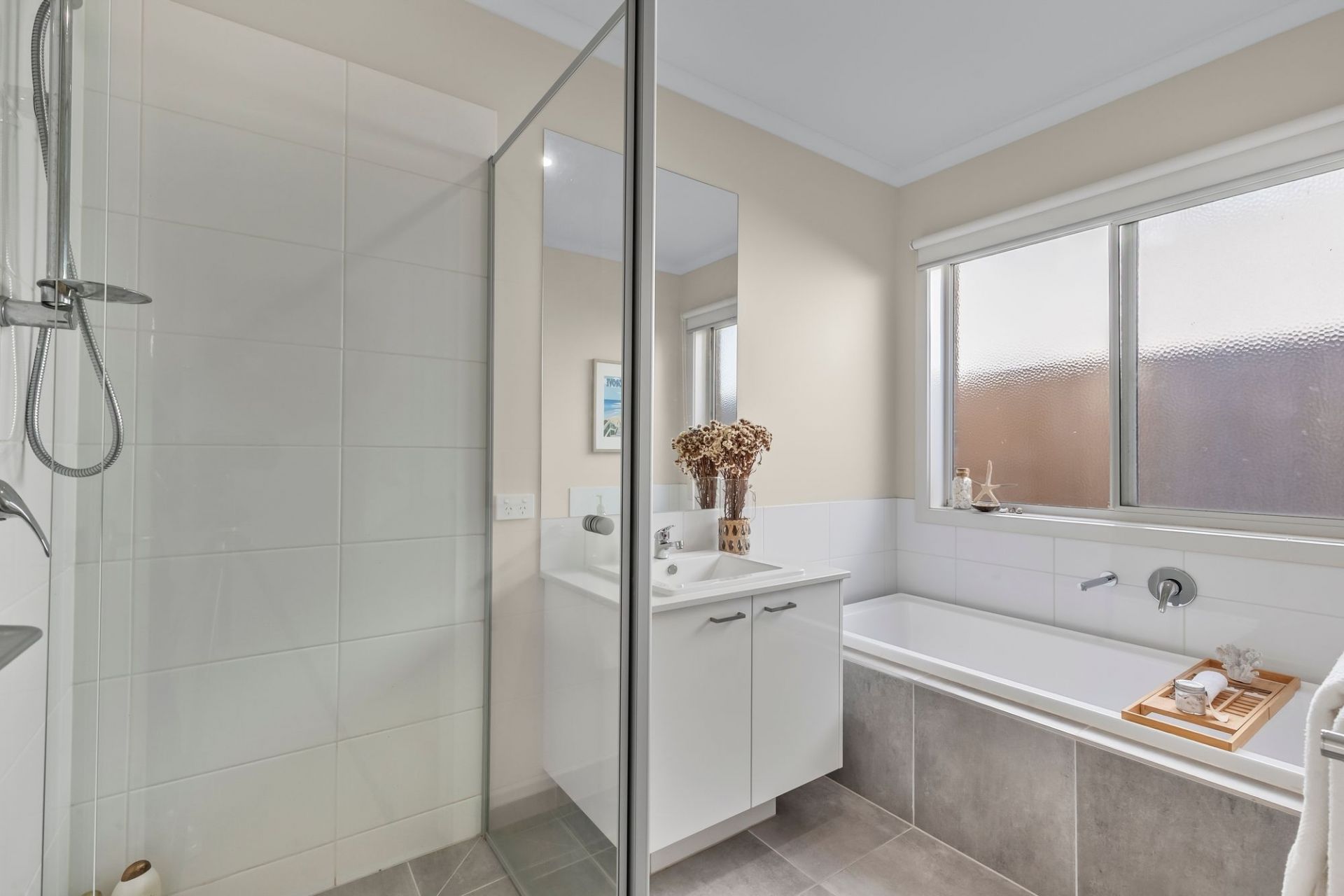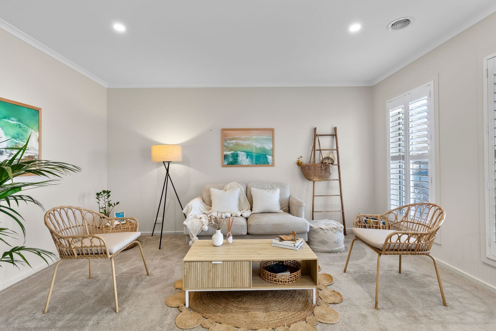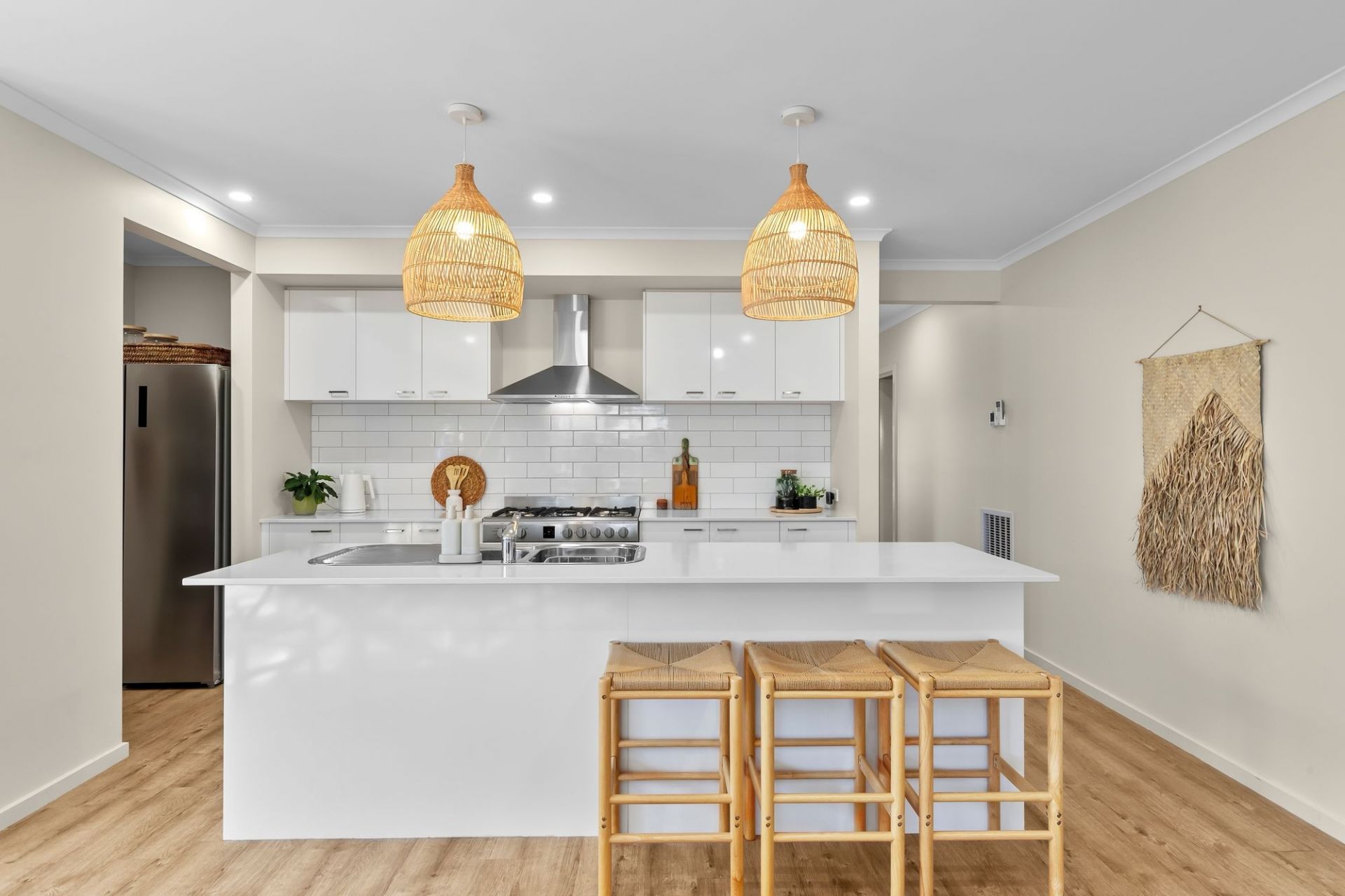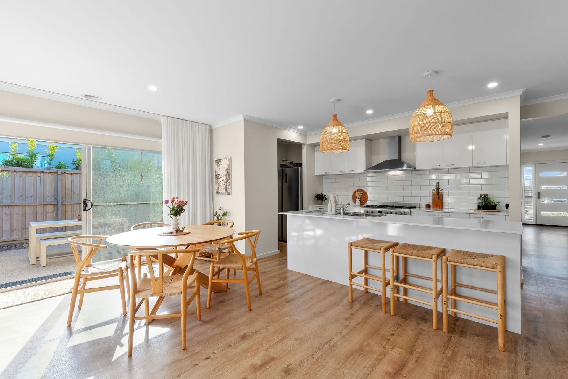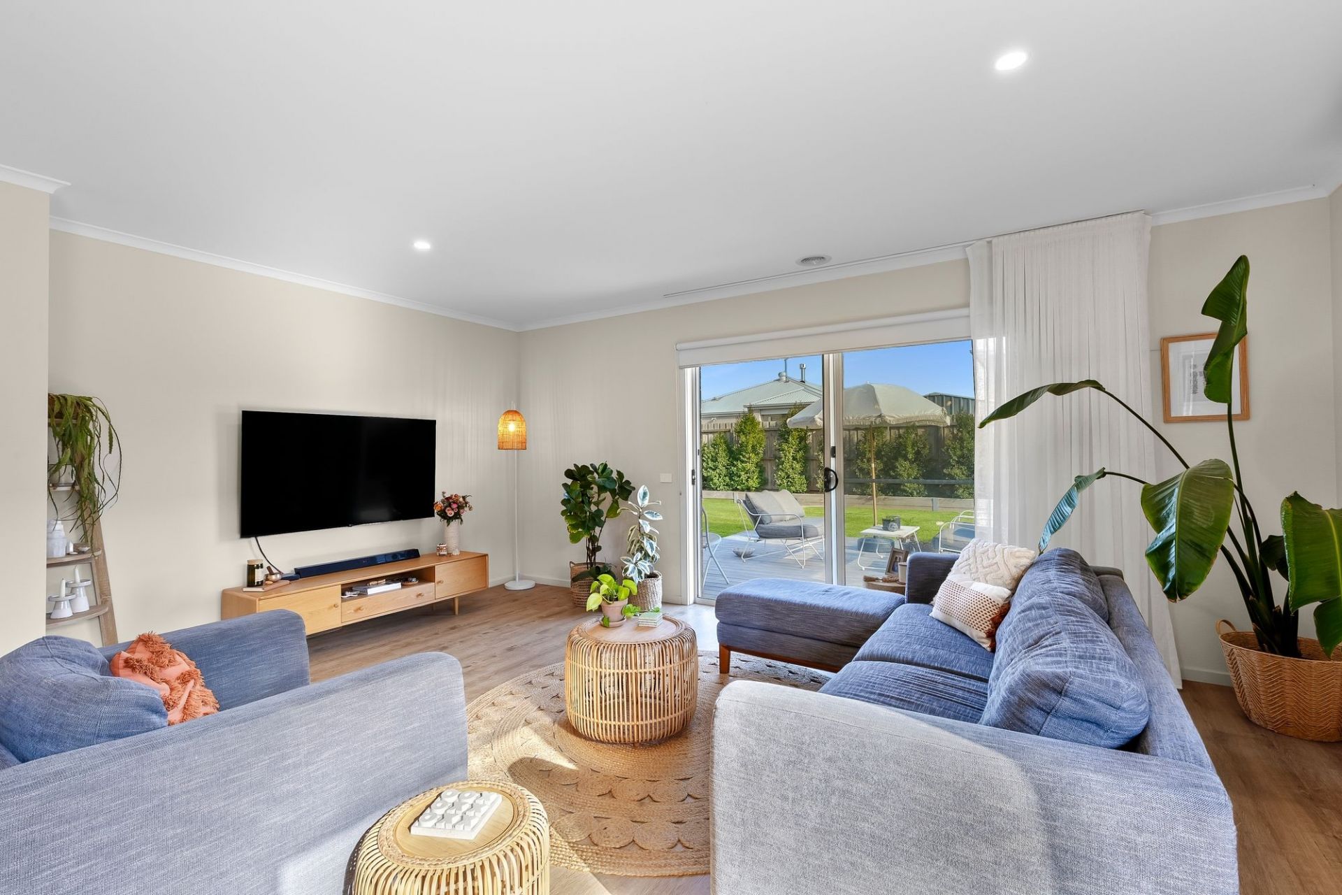 This beautifully finished single-level home presents as new, delivering relaxed style and family functionality just moments from Ocean Grove's best-loved parks, schools and beaches. With its welcoming facade, two living zones, and seamless connection to north and west-facing outdoor entertaining, it offers everyday comfort with plenty of coastal flair. Enjoy space to unwind or entertain, four generous bedrooms, and thoughtful inclusions such as ducted heating, split system cooling, double garage with backyard access, and a fully fenced yard for kids and pets. Whether you’re upsizing, investing or searching for the ideal family base, this home has all the hallmarks of a lifestyle-focused address in one of Ocean Grove’s most desirable neighbourhoods.