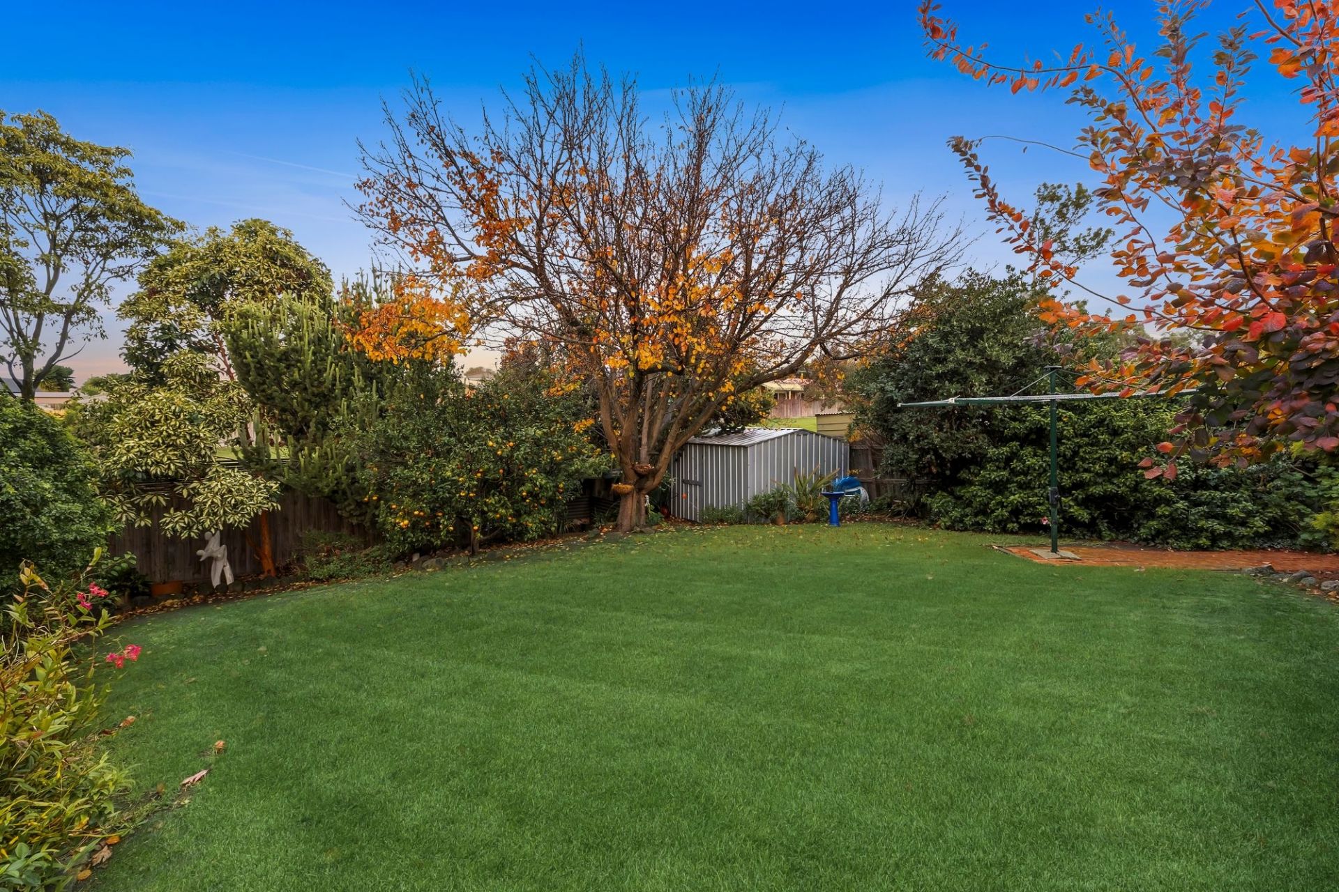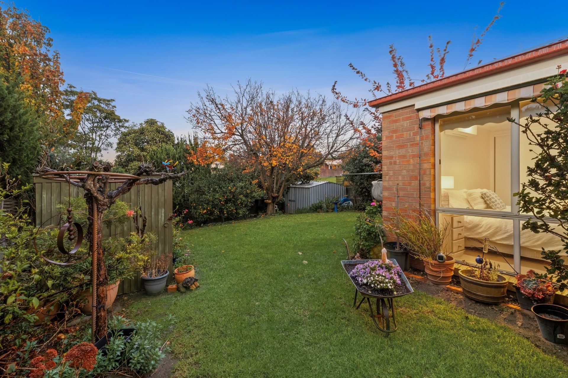 -Secure & sunny backyard is immersed in leafy privacy – ideal for kids & pets