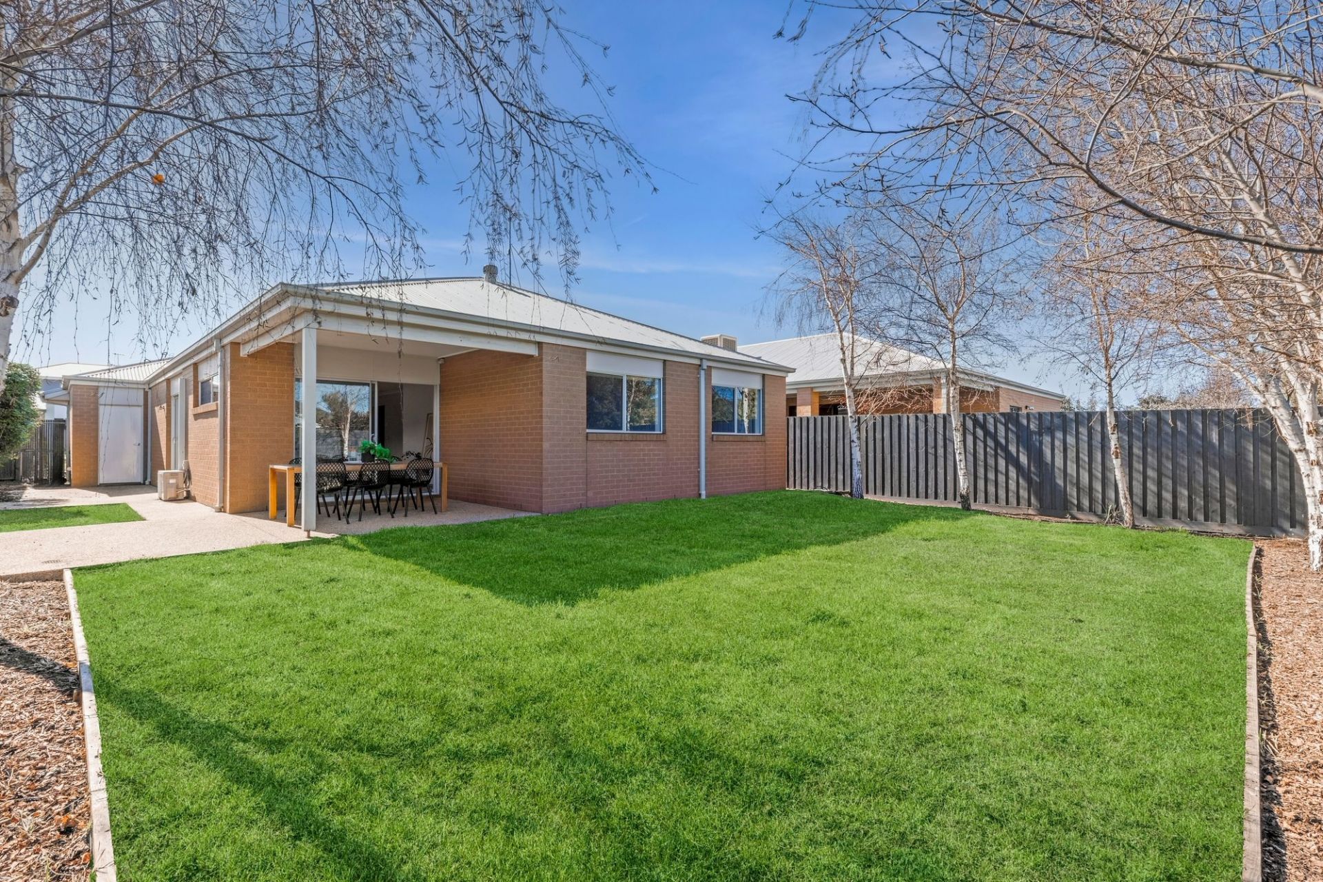 -Lush backyard lawn and privacy enhancing Silver Birch screening