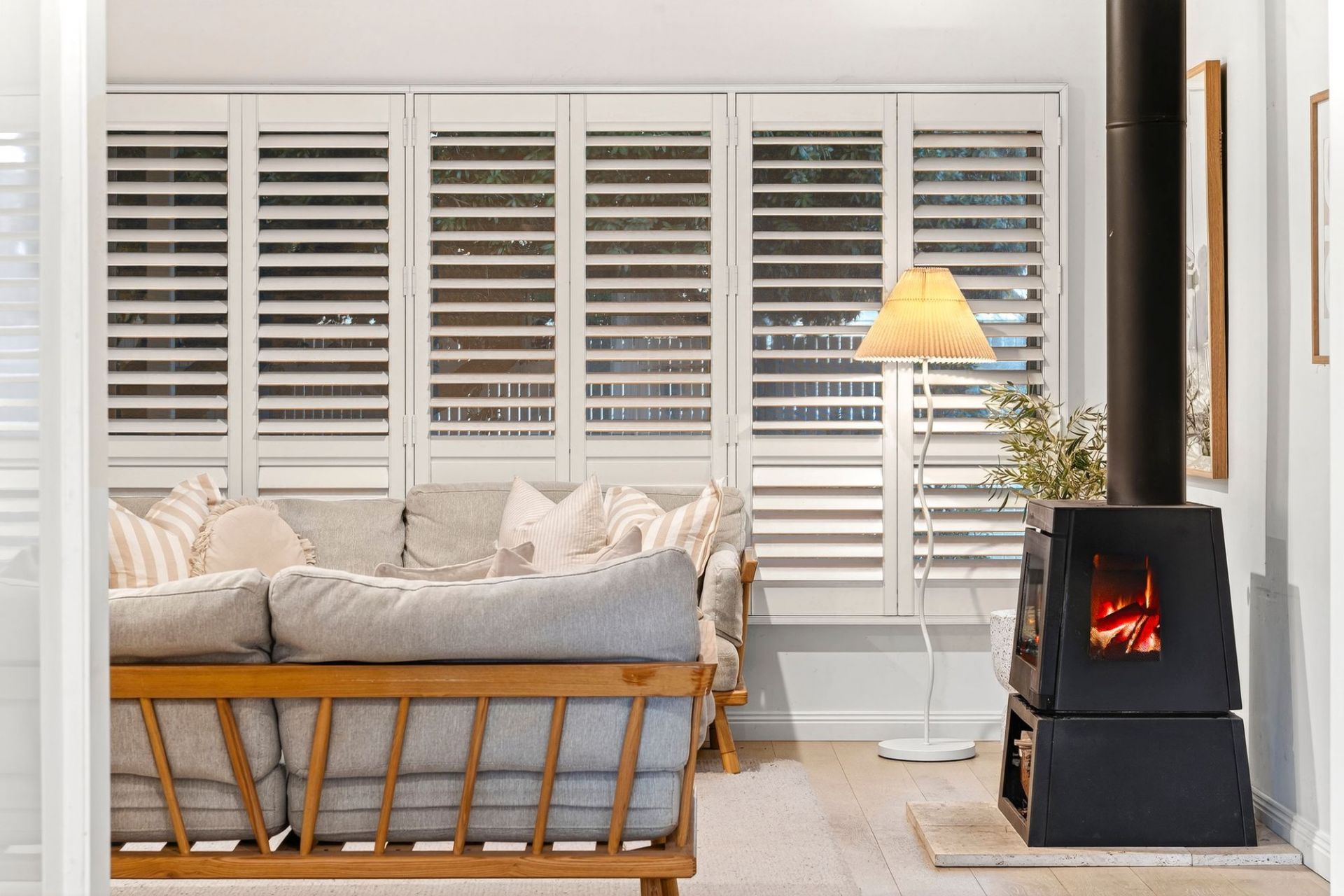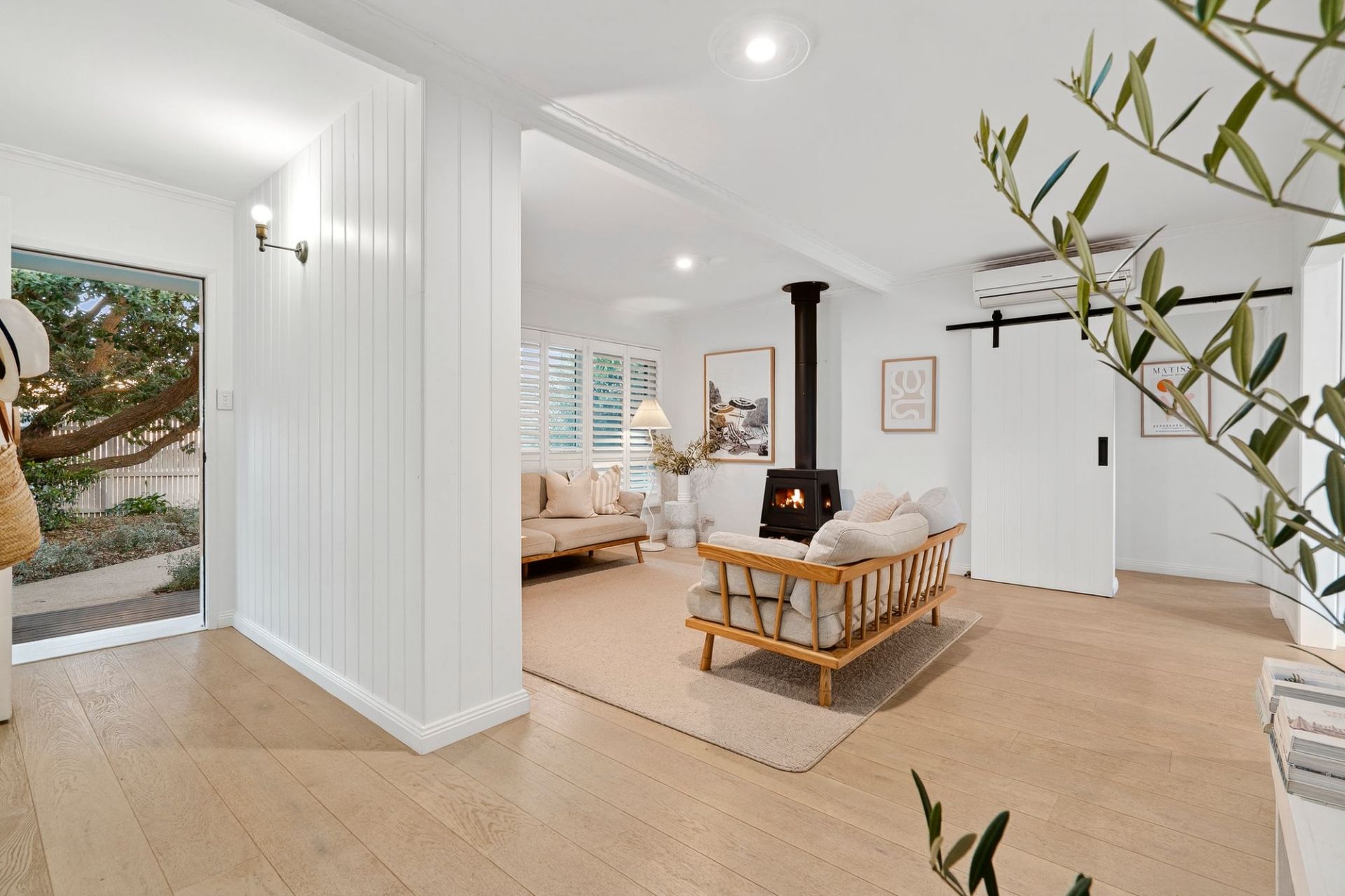 -Main living with reverse cycle AC (RCAC), Scandia wood heater & built-in cabinetry