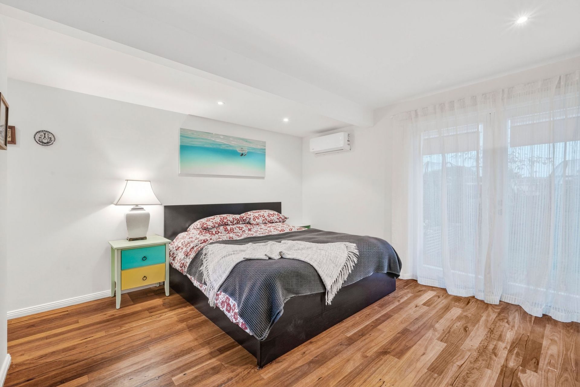 -Privately zoned, the main delights with BIR, a/c, modern ensuite & access to an inviting garden deck
