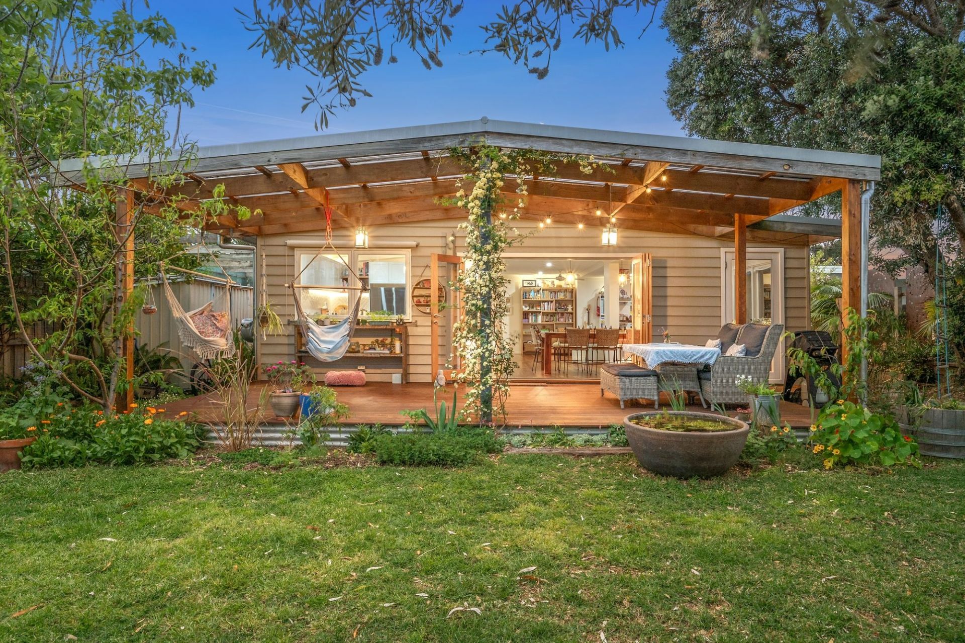 -Dream, north-facing backyard, spacious & exquisitely framed by beautiful gardens