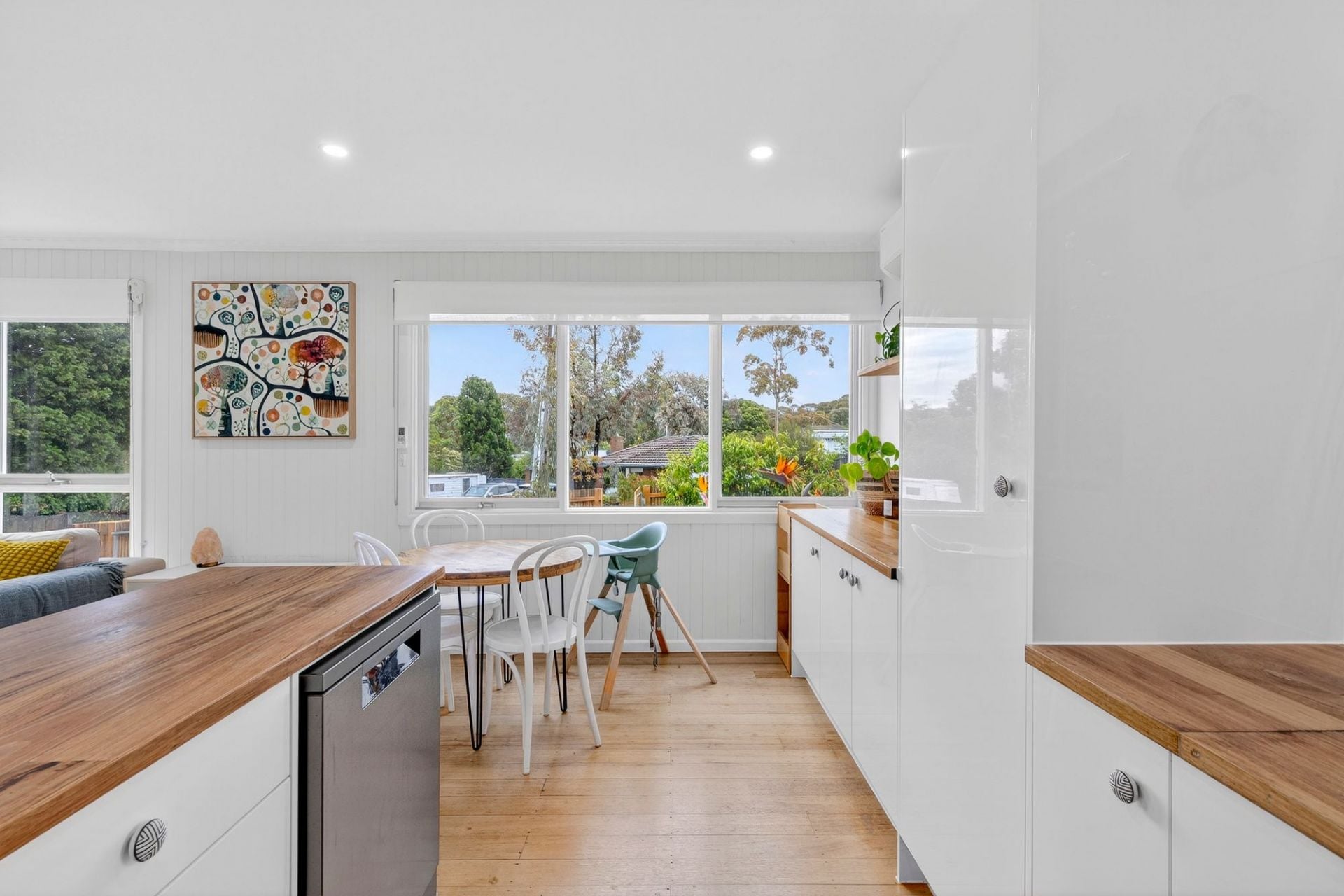 “The living room is our favourite spot to kick back and unwind. It’s bathed in northern light all day long. We rarely need the lights on, and the natural warmth gives the whole space a beautiful, welcoming glow.”