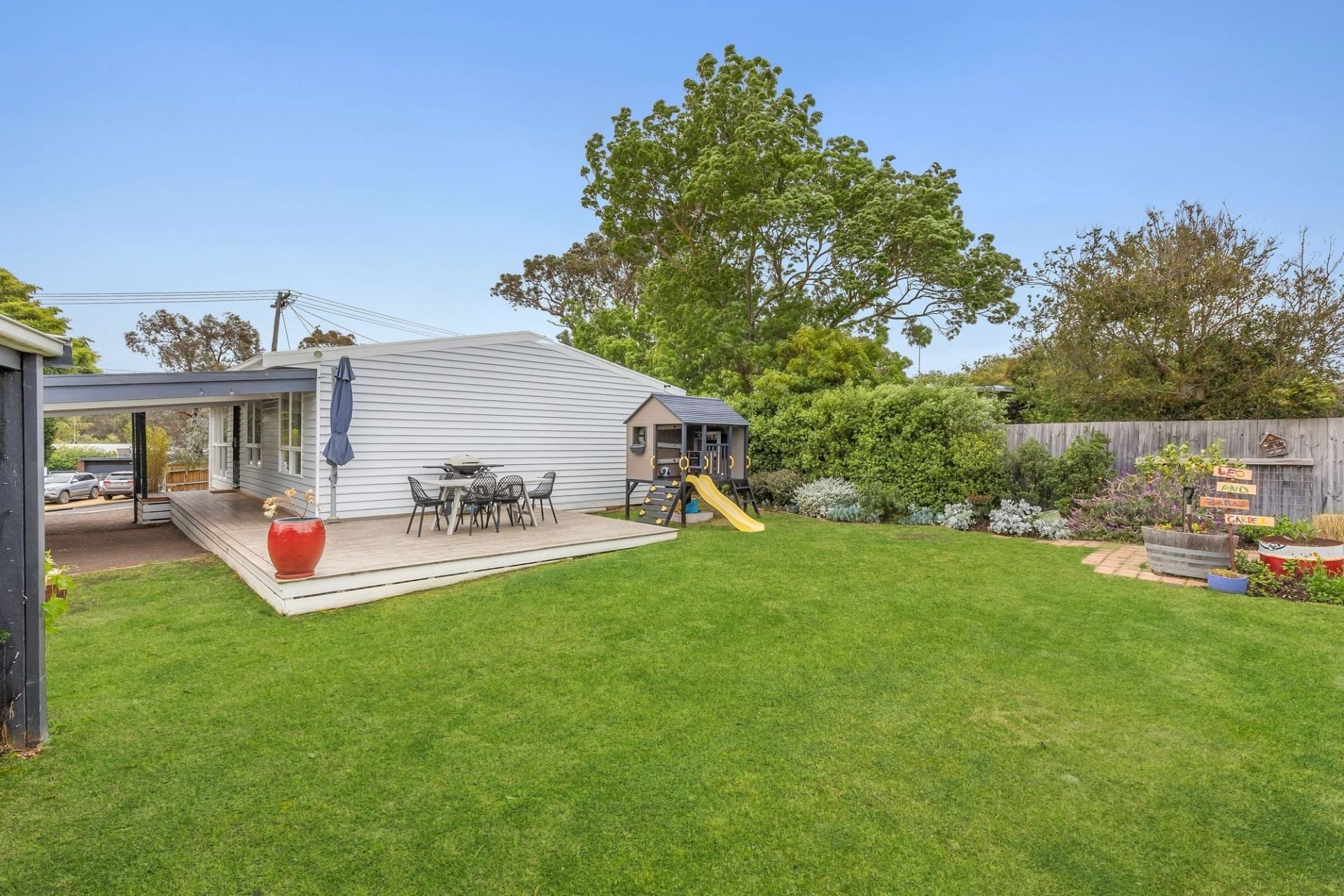 Enveloped in coastal serenity and sitting in total harmony with its prized Old Ocean Grove setting, this original beach house has been impeccably renovated with a meticulous eye for detail and a seamless unity between indoors and out. A picture of seaside charm behind its white weatherboard façade, the 3-bedroom abode captivates with its north-facing living domain and contemporary kitchen dressed in Victorian Ash, while outside an expansive alfresco deck is perfectly set up for open air hosting. Fully fenced behind high auto gates and providing abundant secure play space for pets and children, the 588sqm (approx.) property also includes a double carport with space to stow your boat or caravan. This is what coastal living is all about!
