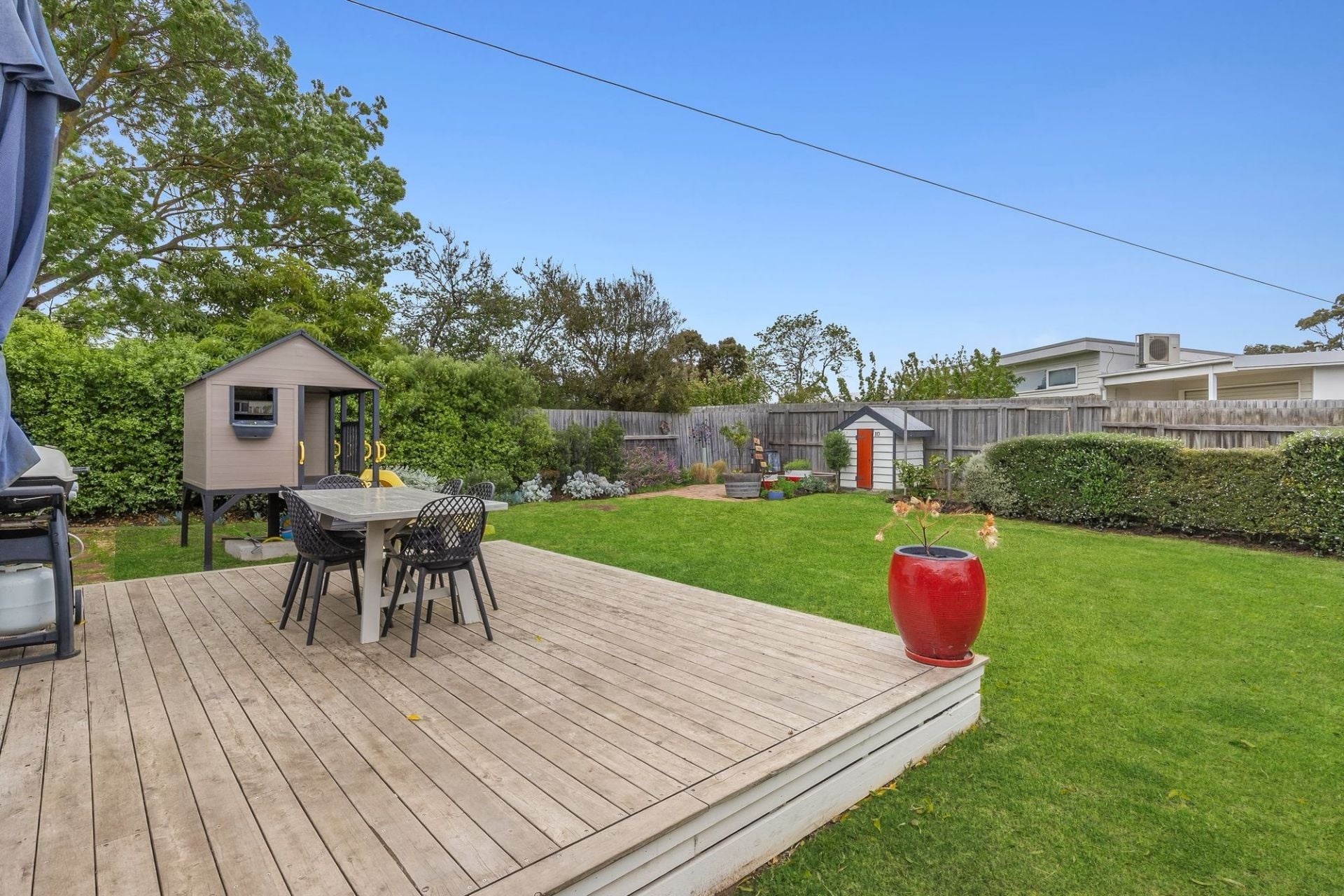 -Outdoors, a generous alfresco deck provides a peaceful setting to soak up the laidback holiday atmosphere