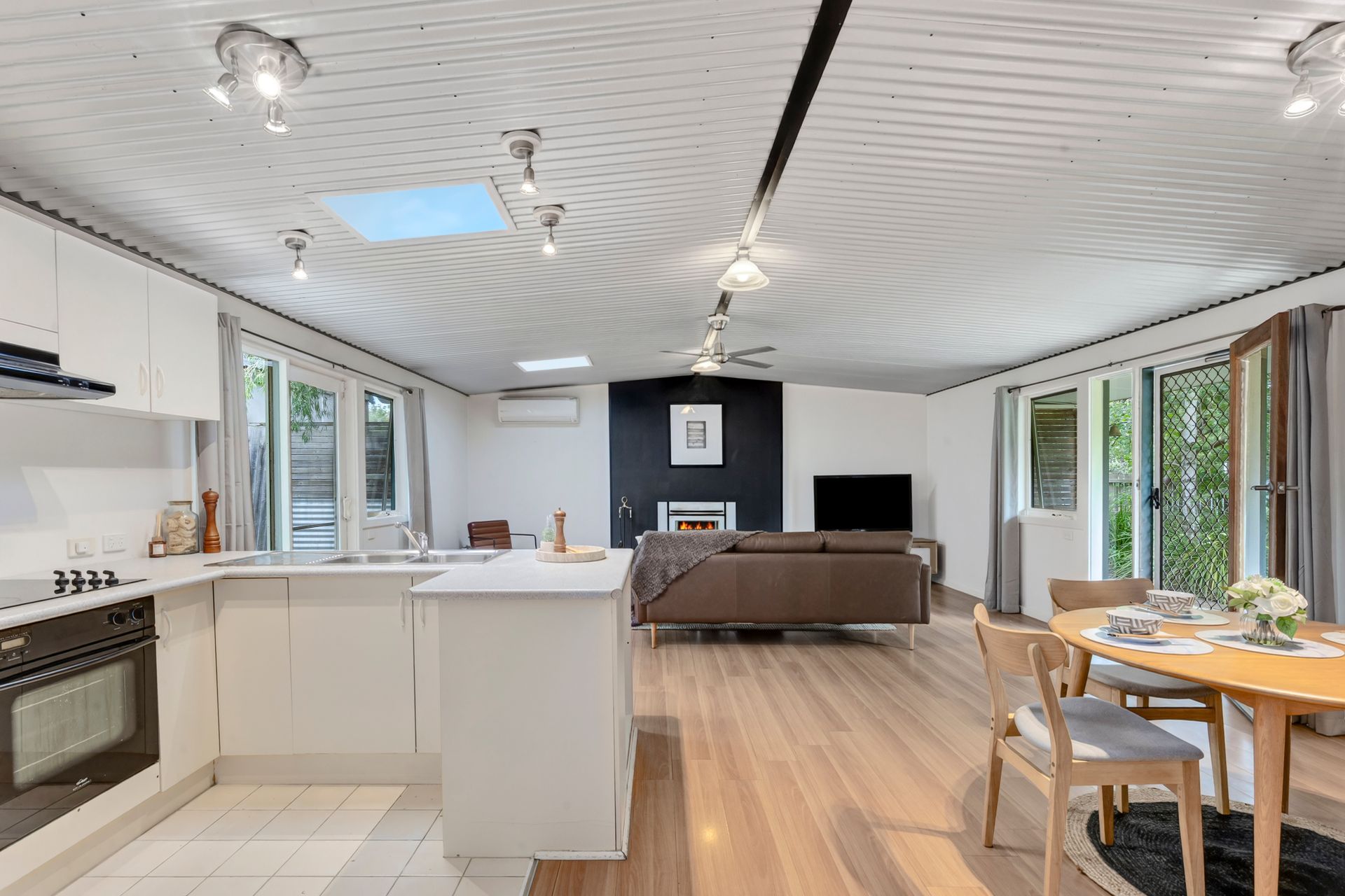 -Open plan living with wood fire heater, SSAC and ceiling fan