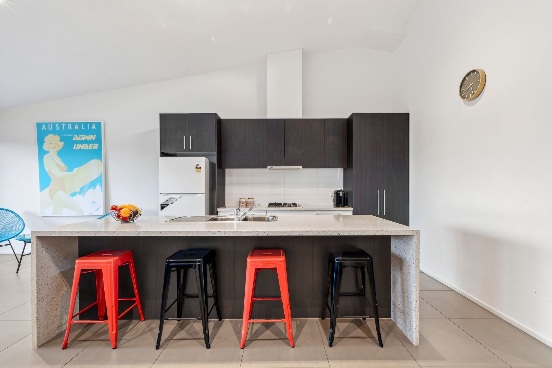 • A sleek stone kitchen makes mealtimes effortless, with breakfast seating and Bosch appliances