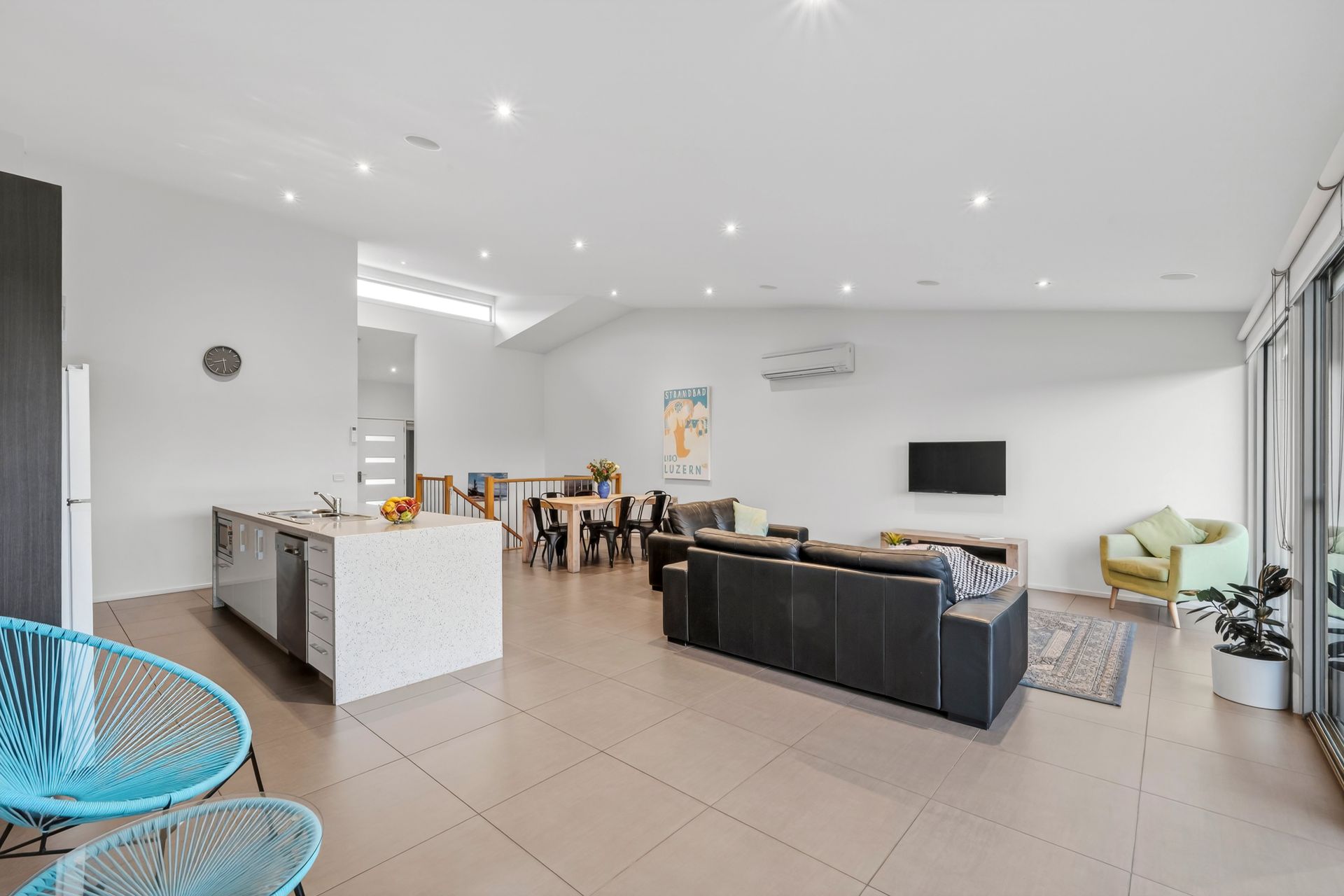 -Open-plan living and meals zone with full-wall glazing drawing in lashings of natural light