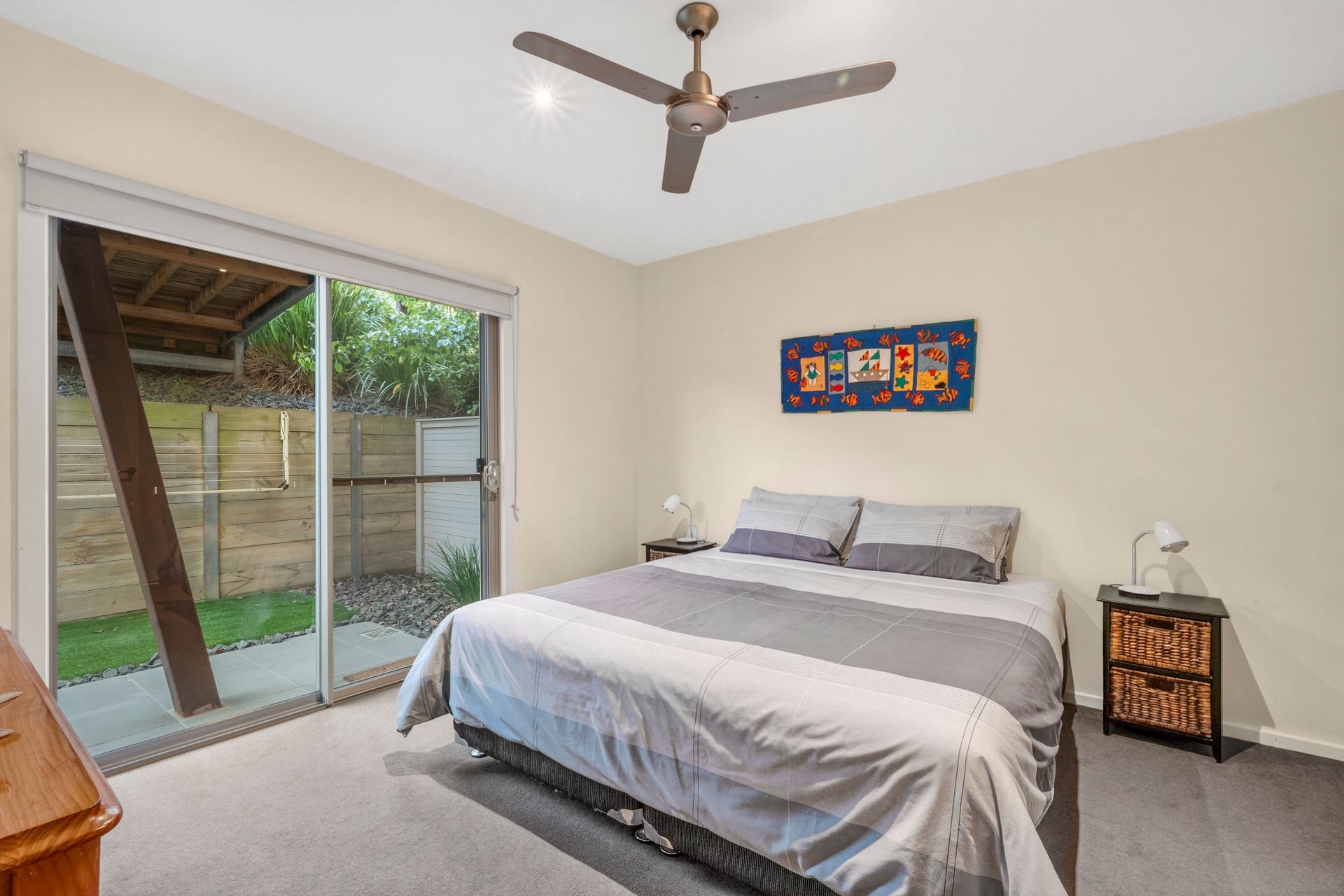 -Two further bedrooms feature built-in robes, ceiling fans and direct access to a private courtyard