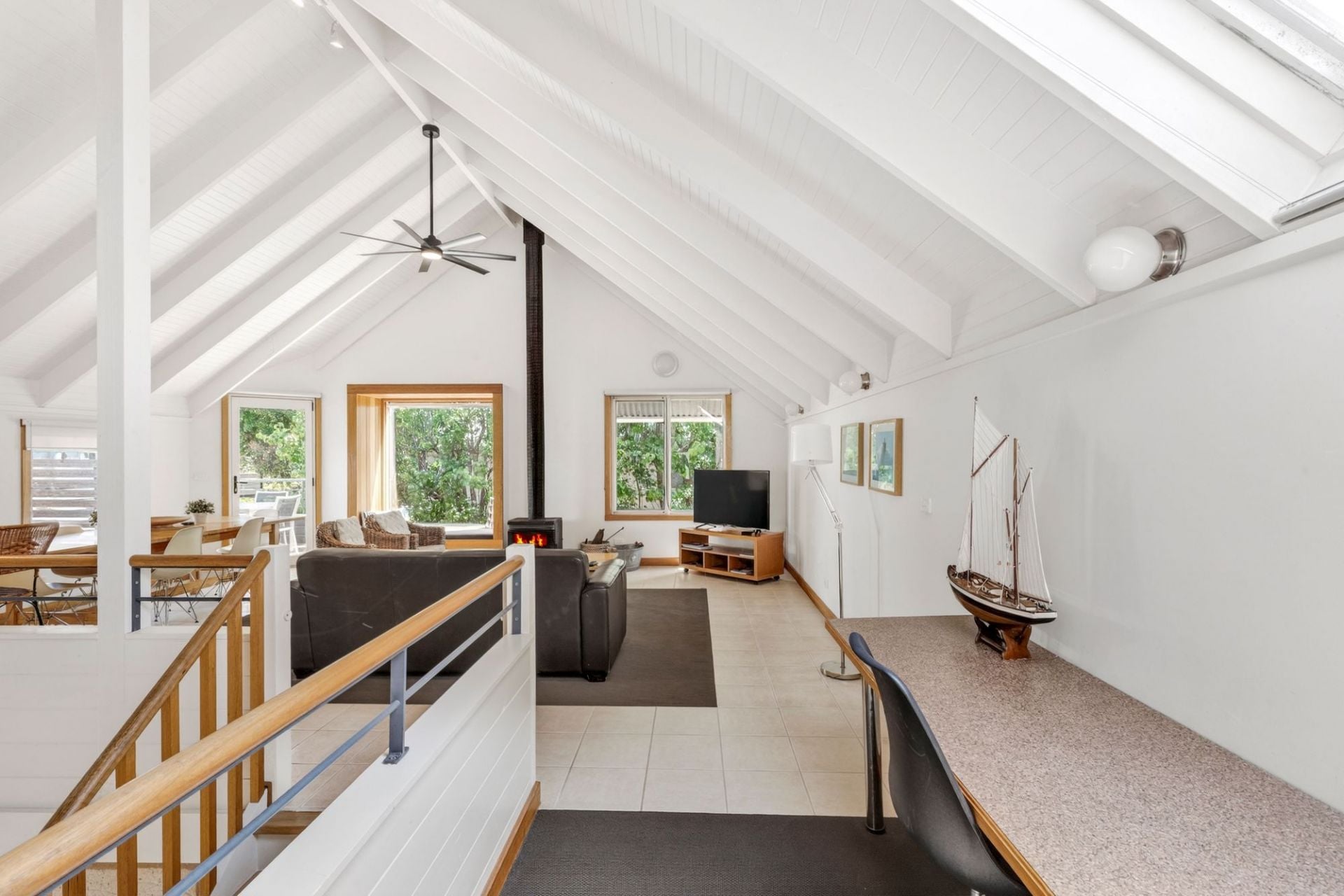 Tucked quietly at the rear of Seahaven Village, this unique dual-residence offering combines privacy, flexibility and unbeatable walkability - all just moments from the river and Barwon Heads village. Configured as two fully self-contained homes - the upper-level Tower suite and ground-floor Trevally suite - the property provides outstanding versatility for investors, multigenerational living, or anyone seeking a premium short-stay opportunity. Sunlit interiors, raked ceilings, a cosy log fire and leafy outlooks create an instantly relaxed coastal atmosphere, while each level enjoys its own kitchen, living domain, bedroom suite and private outdoor connection. A rare find in this tightly held precinct, with the option to lease, live in, or combine both levels into one expansive coastal retreat.