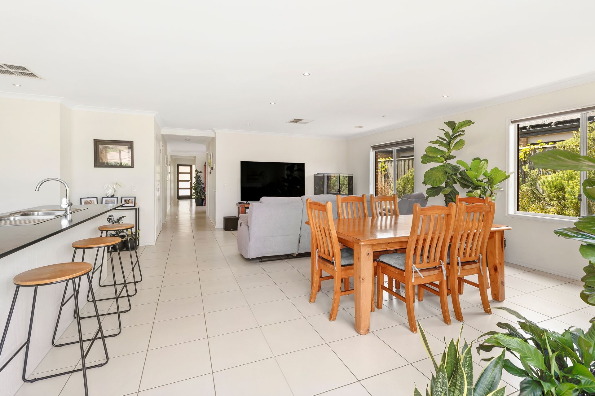 Flowing freely over a superbly appointed single level with an uplifting sense of space and light, this 4-bedroom residence blends lifestyle and modern comfort to sheer perfection. Presenting with a crisp contemporary finish inside and out, its spacious design features two distinct living zones, a sleek stone-topped kitchen, and a secure backyard with ample grassy space for kids and pets. Placed on a north-facing 548sqm (approx.) in quiet cul-de-sac, its peaceful address is centrally positioned between the Drysdale and Curlewis shopping hubs, while key lifestyle assets including the local golf course, boat ramp, and McLeods Waterholes Reserve are also within easy reach.