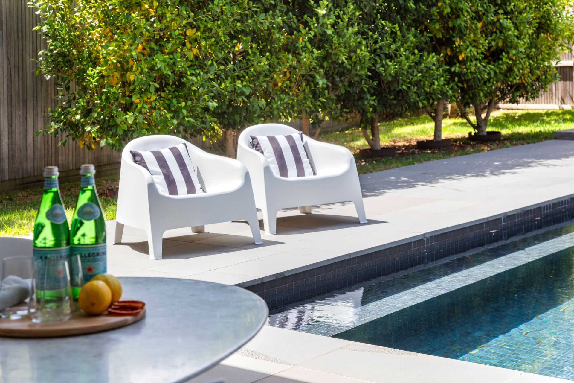 -Resort-style in-ground concrete swimming pool with self-cleaning technology