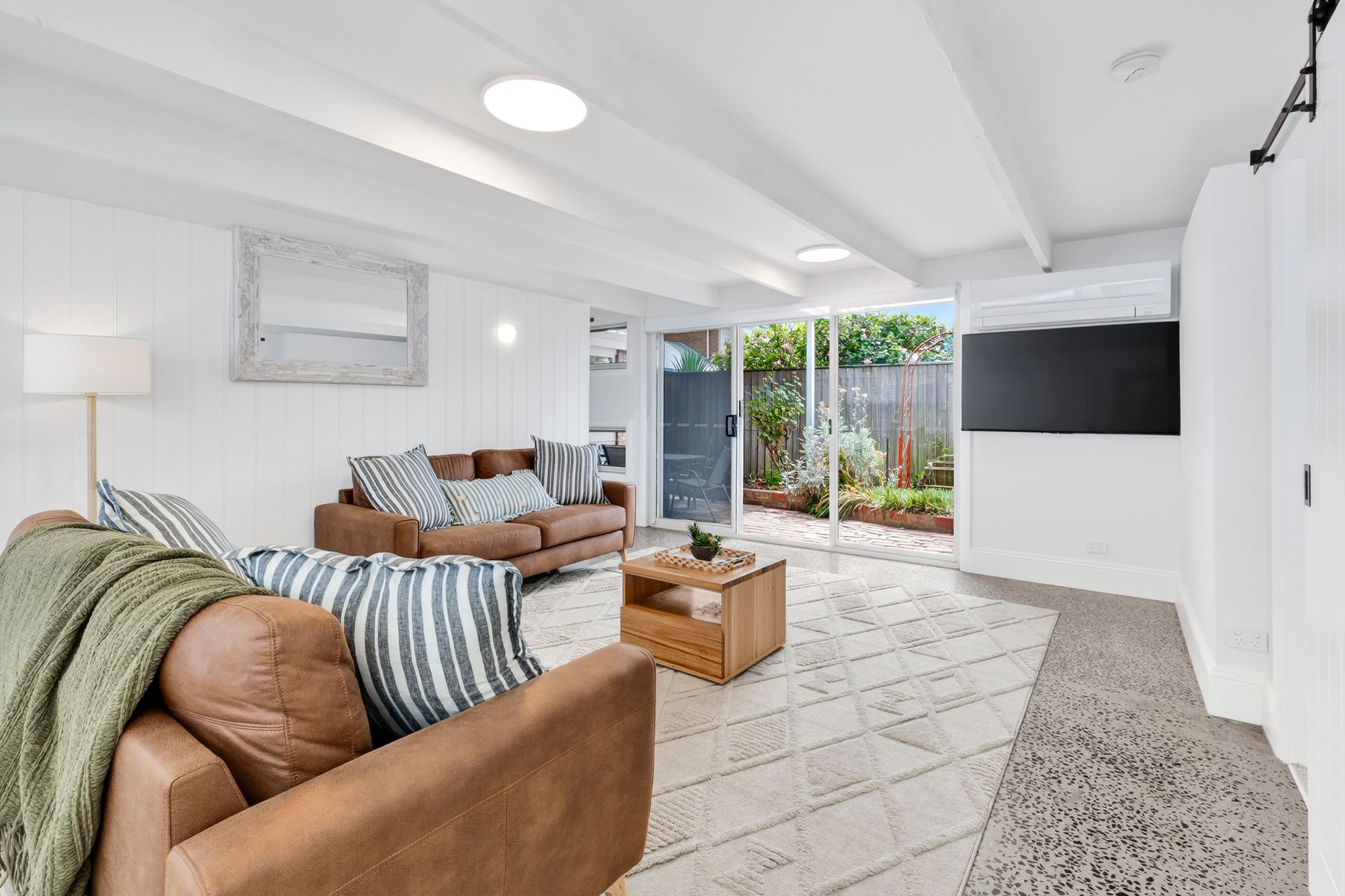 The stylishly renovated kitchen offers modern functionality and clean design, seamlessly connecting to the light-filled living domain and flowing directly to the easy-care north-facing alfresco area. Outdoors, the low-maintenance garden remains a private sanctuary, complete with established roses and a graceful Silver Birch tree, delivering total privacy and blue sky outlooks.