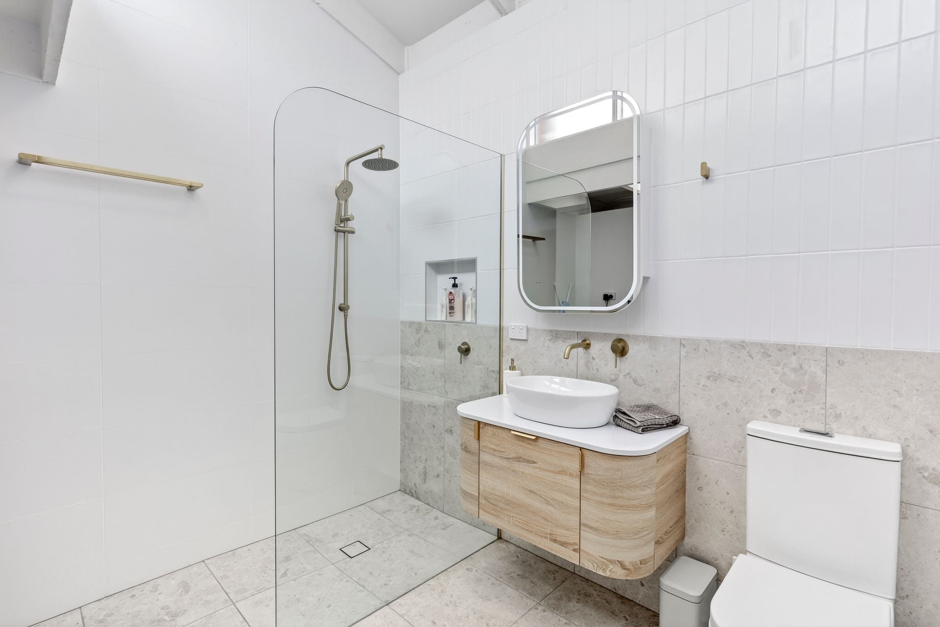- Central bathroom with walk-in shower, single vanity & separate toilet