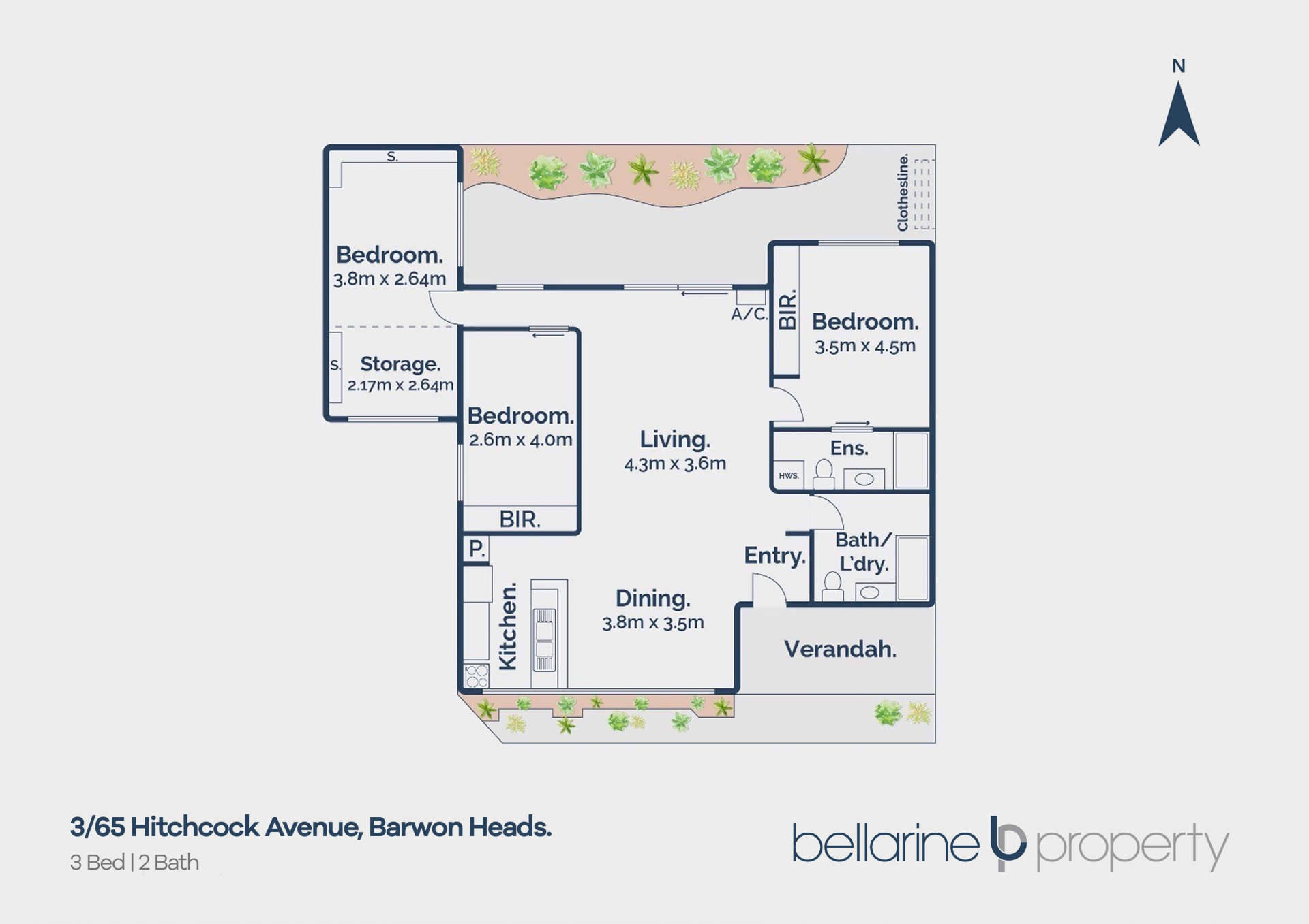 - Three spacious bedrooms with built-in robes & north-facing courtyard outlooks