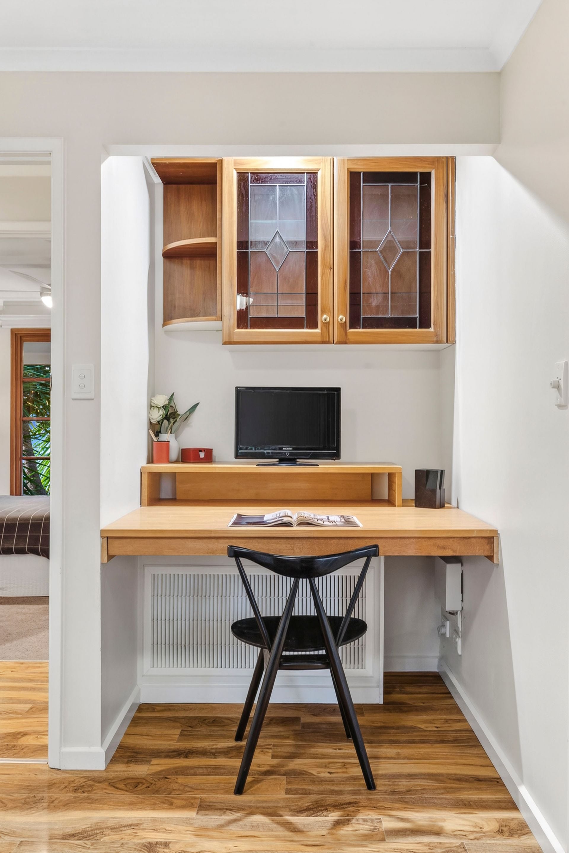 -A sitting room with built-in desk offers valuable flexibility, easily adapting as a quiet home office or study retreat