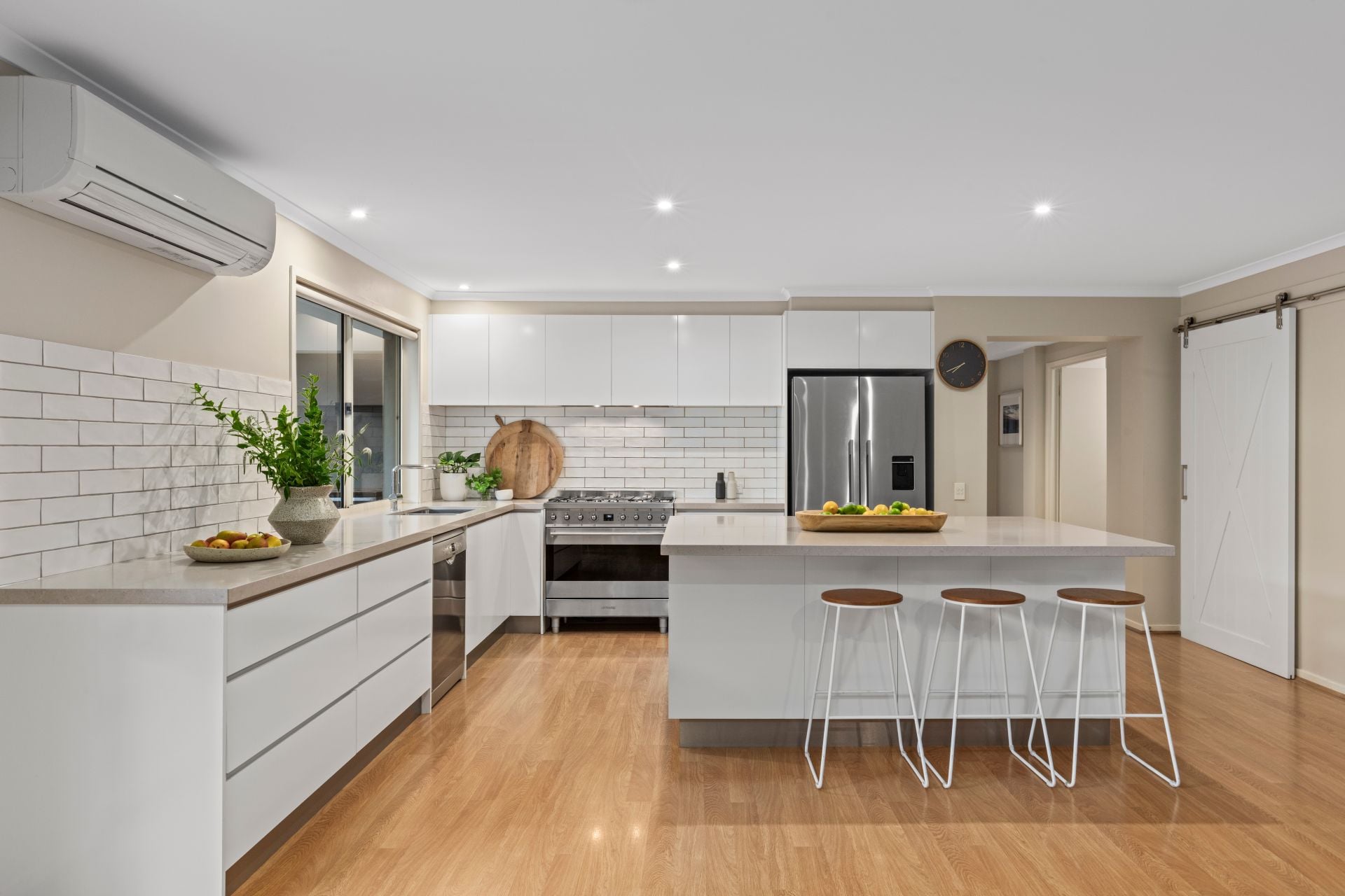 -Feature barn door conceals generous walk-in pantry