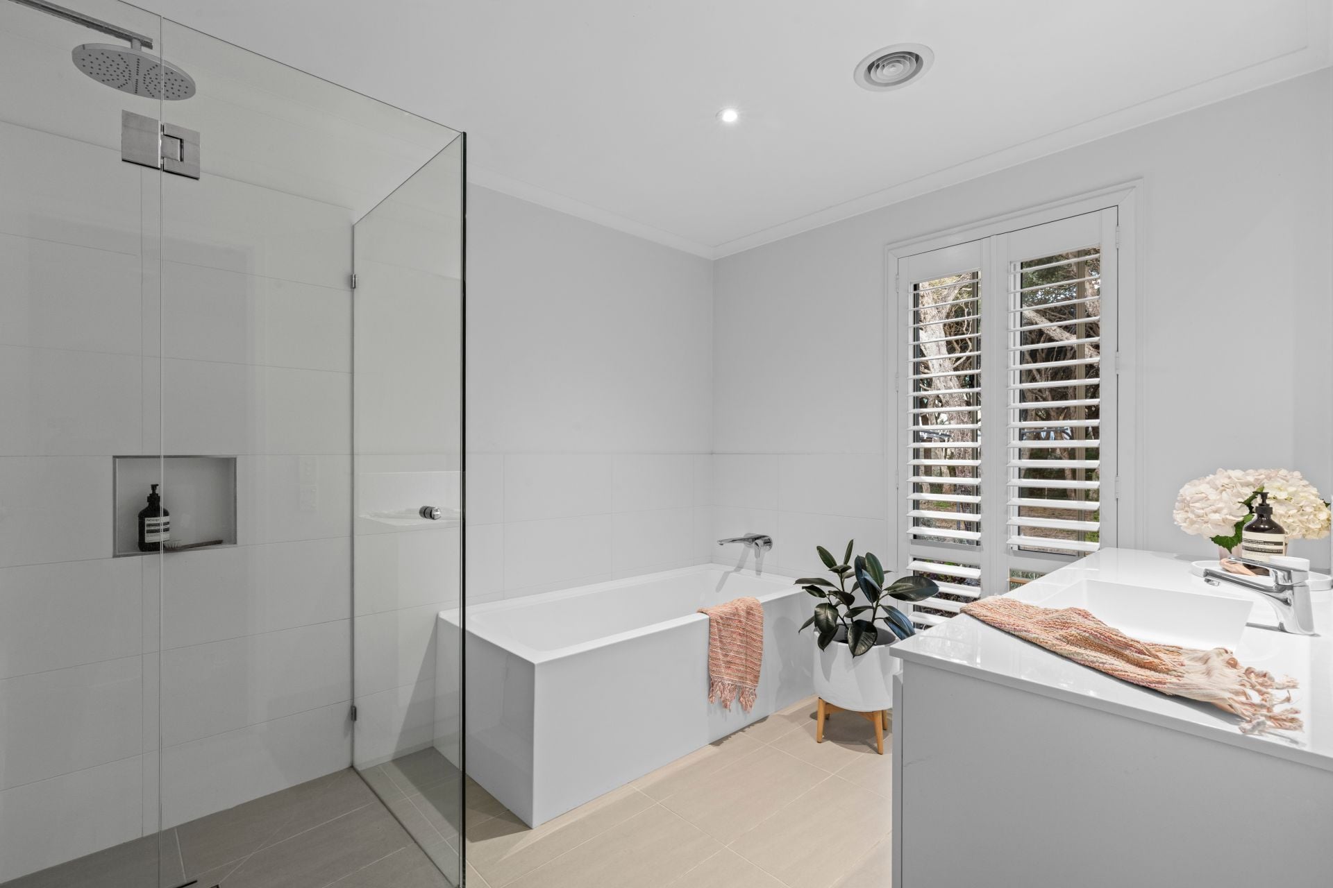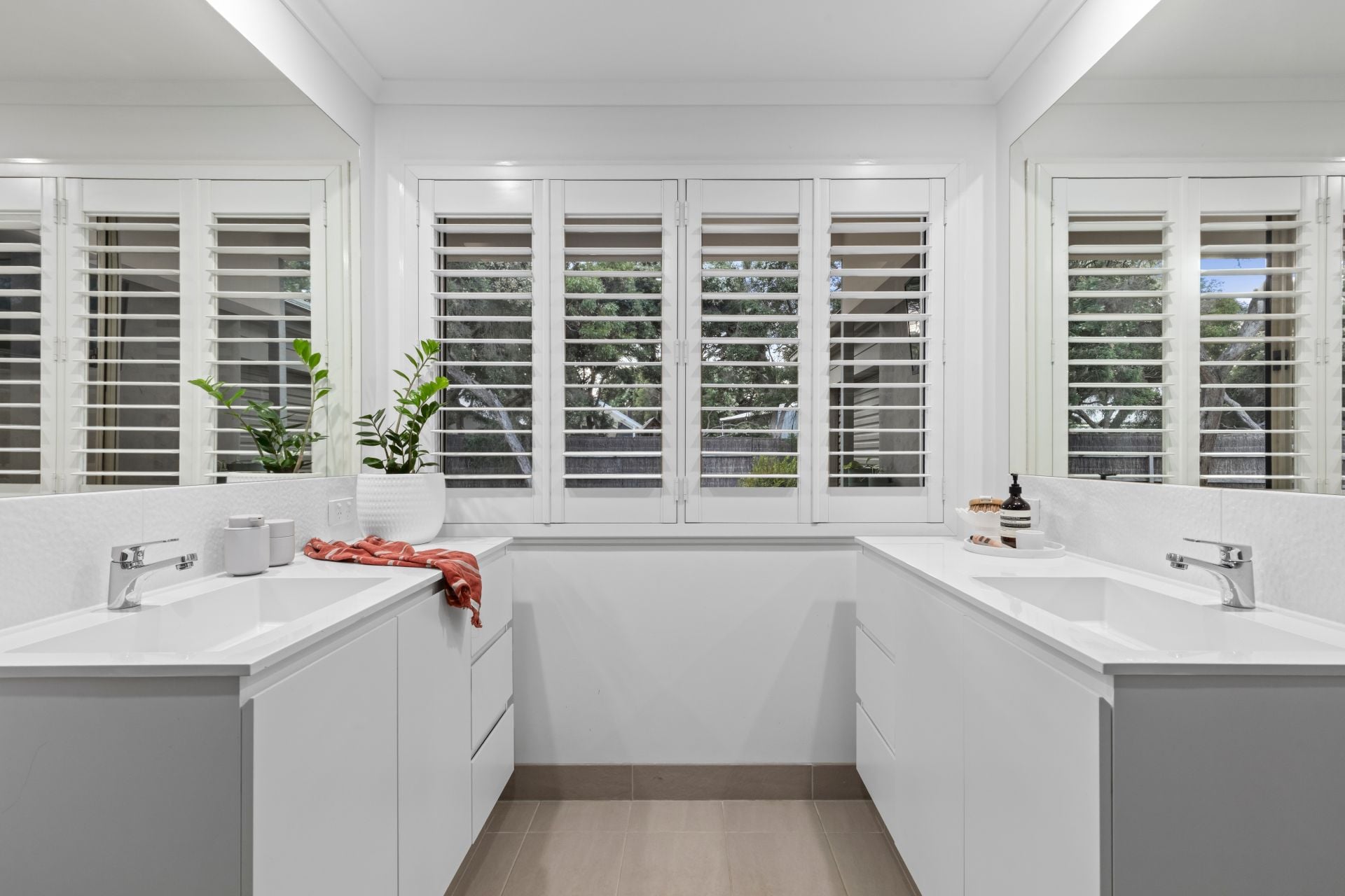 -Ensuite with twin vanities, walk-in shower & heated towel rails