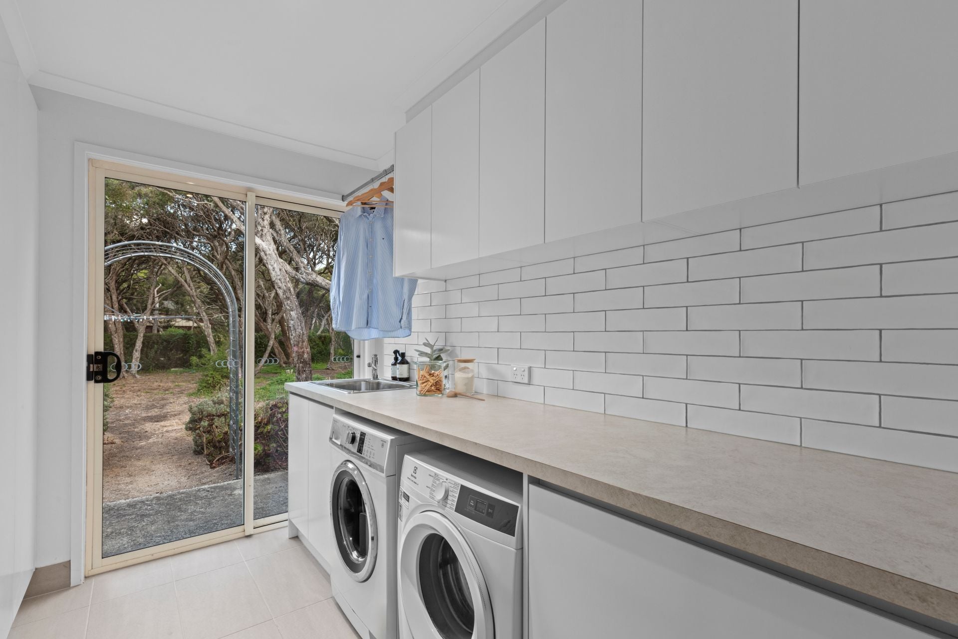 -Fully fitted laundry with hydronic heating panel & convenient overhead hanging rail