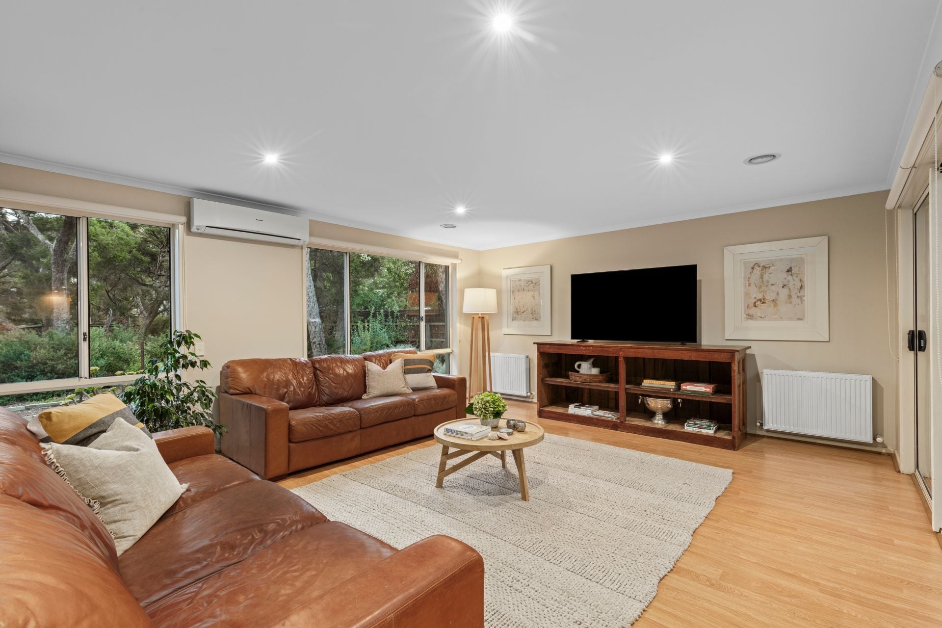 -Two substantial living zones, each with split-system A/C
