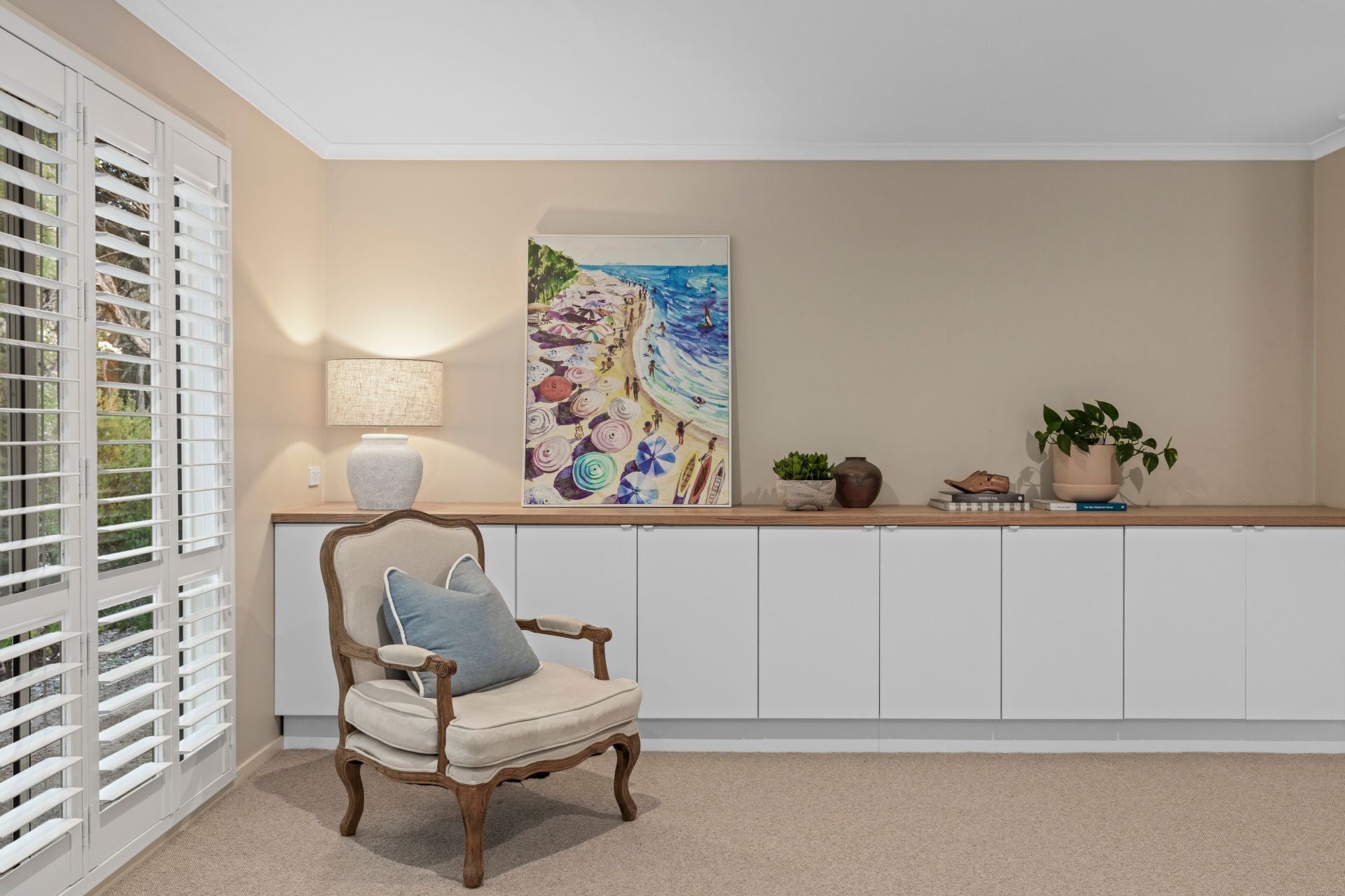 -Plantation shutters throughout add practicality & coastal character